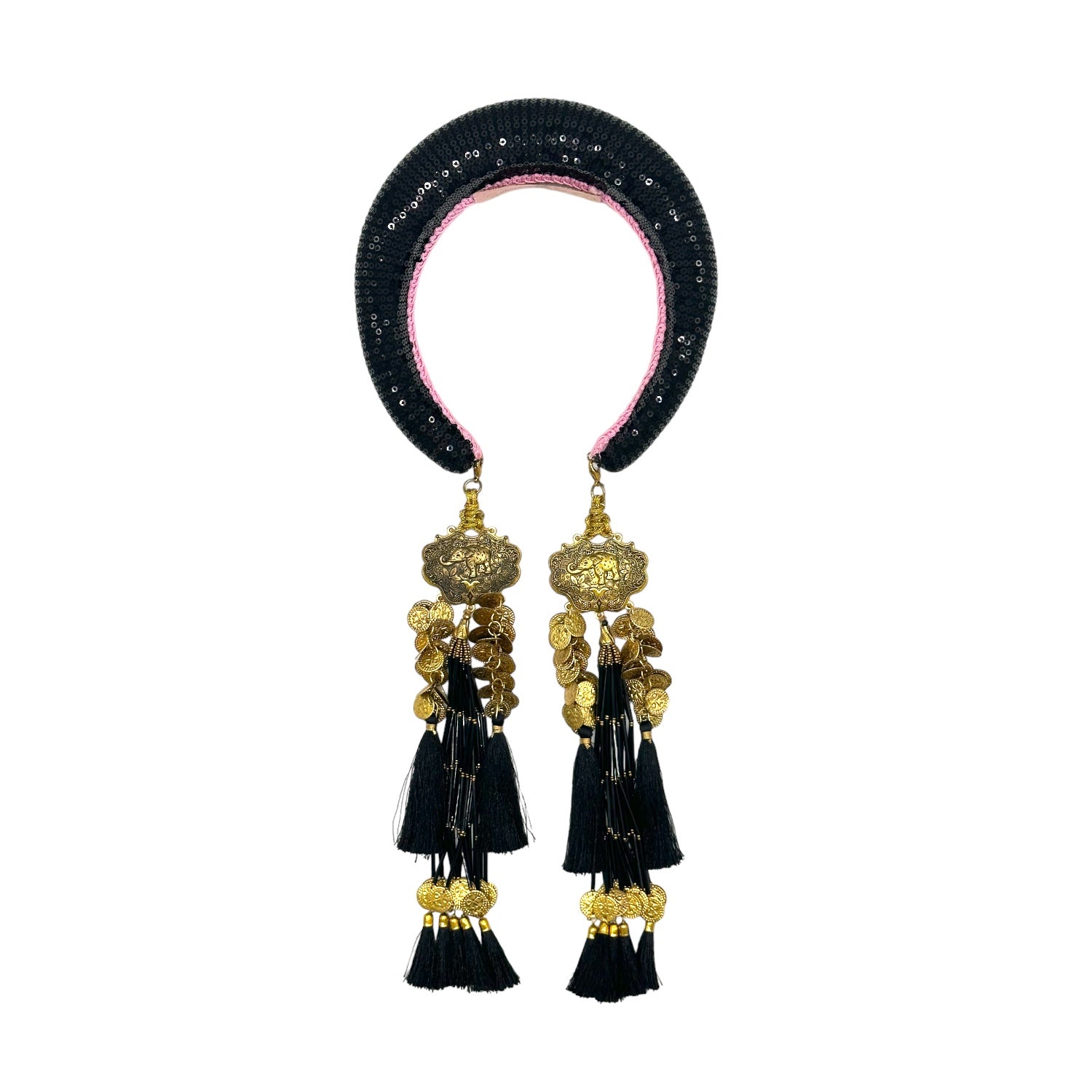 Hand made in London with artisans making the removable tassel earrings in India. Perfect for garden parties , weddings and frolicking through the country side.