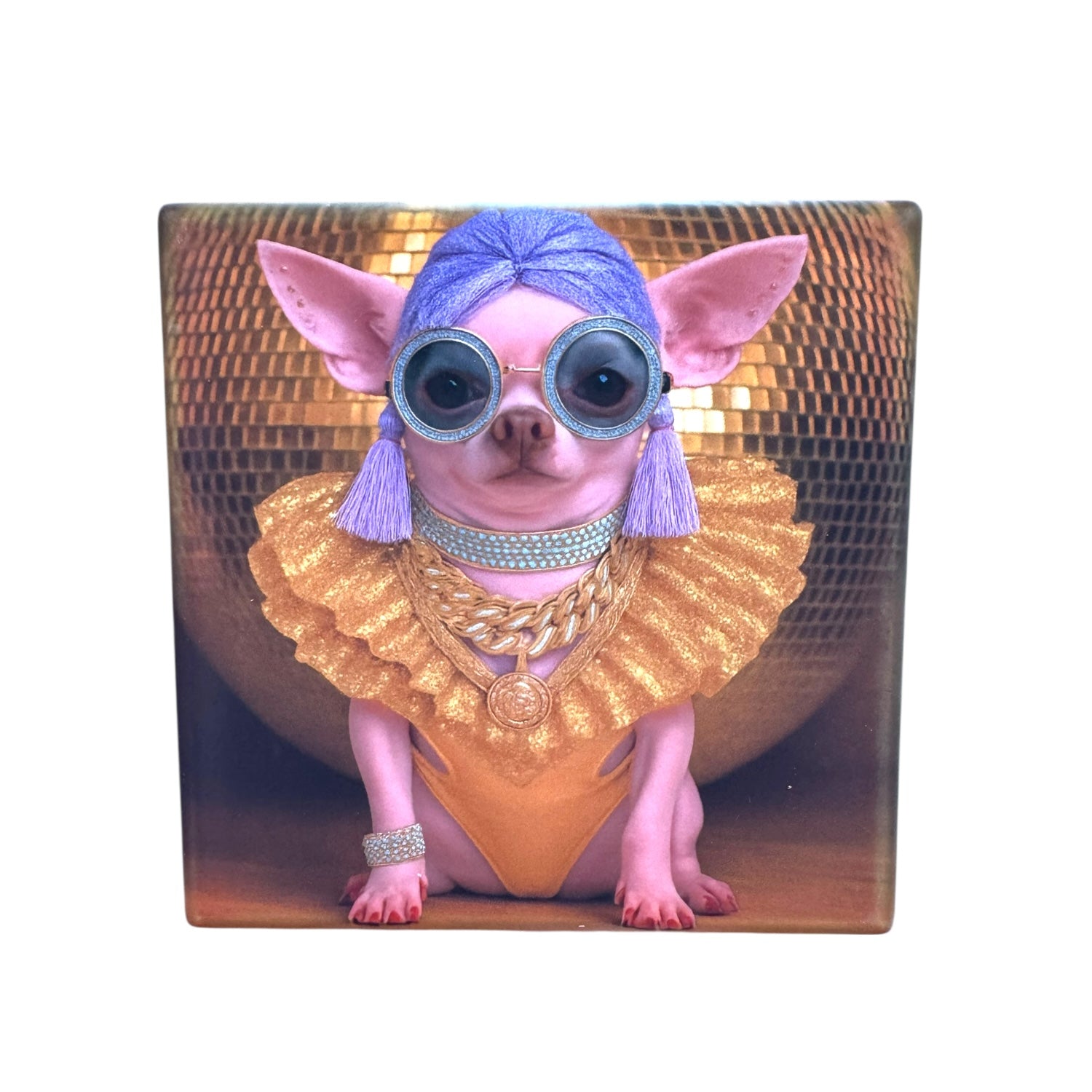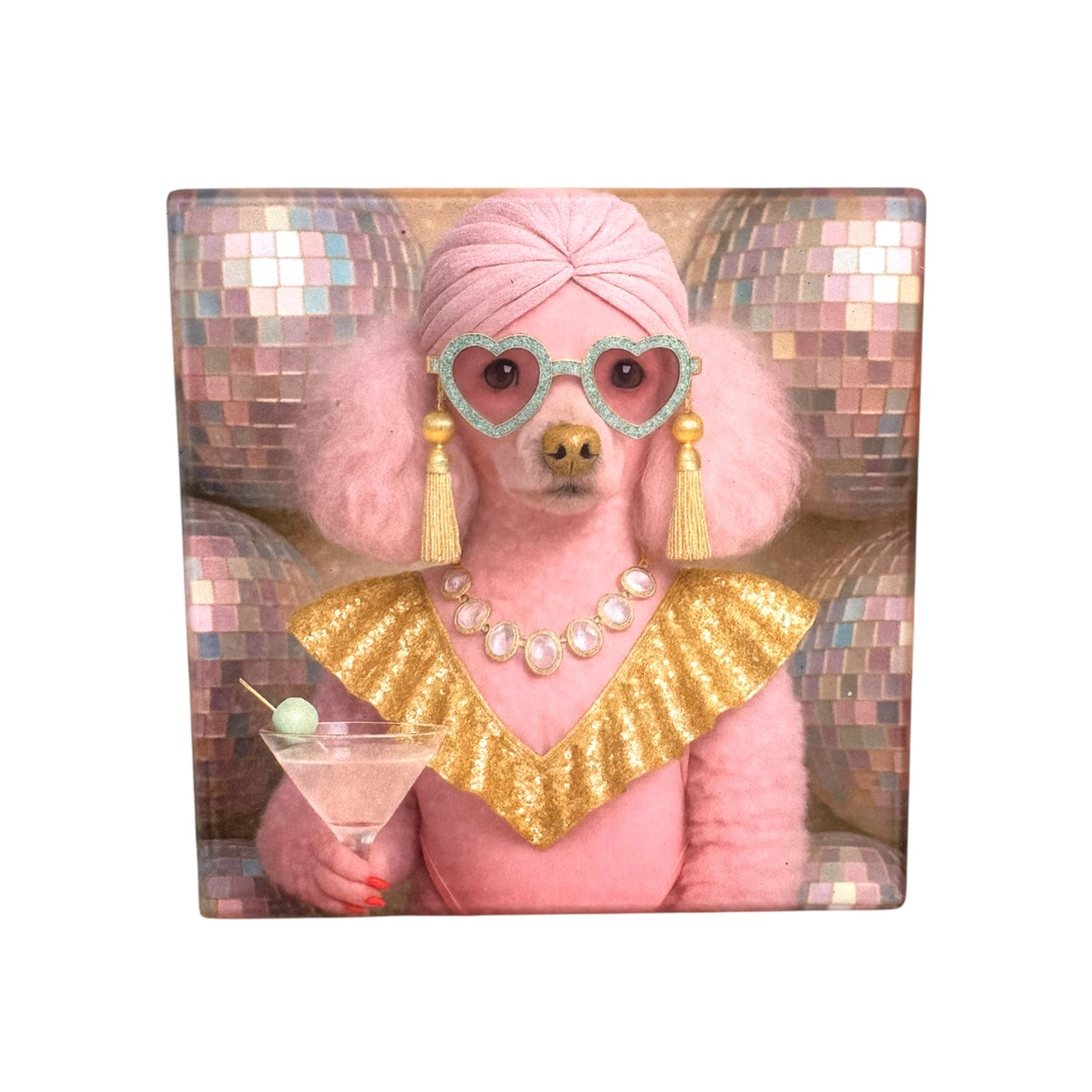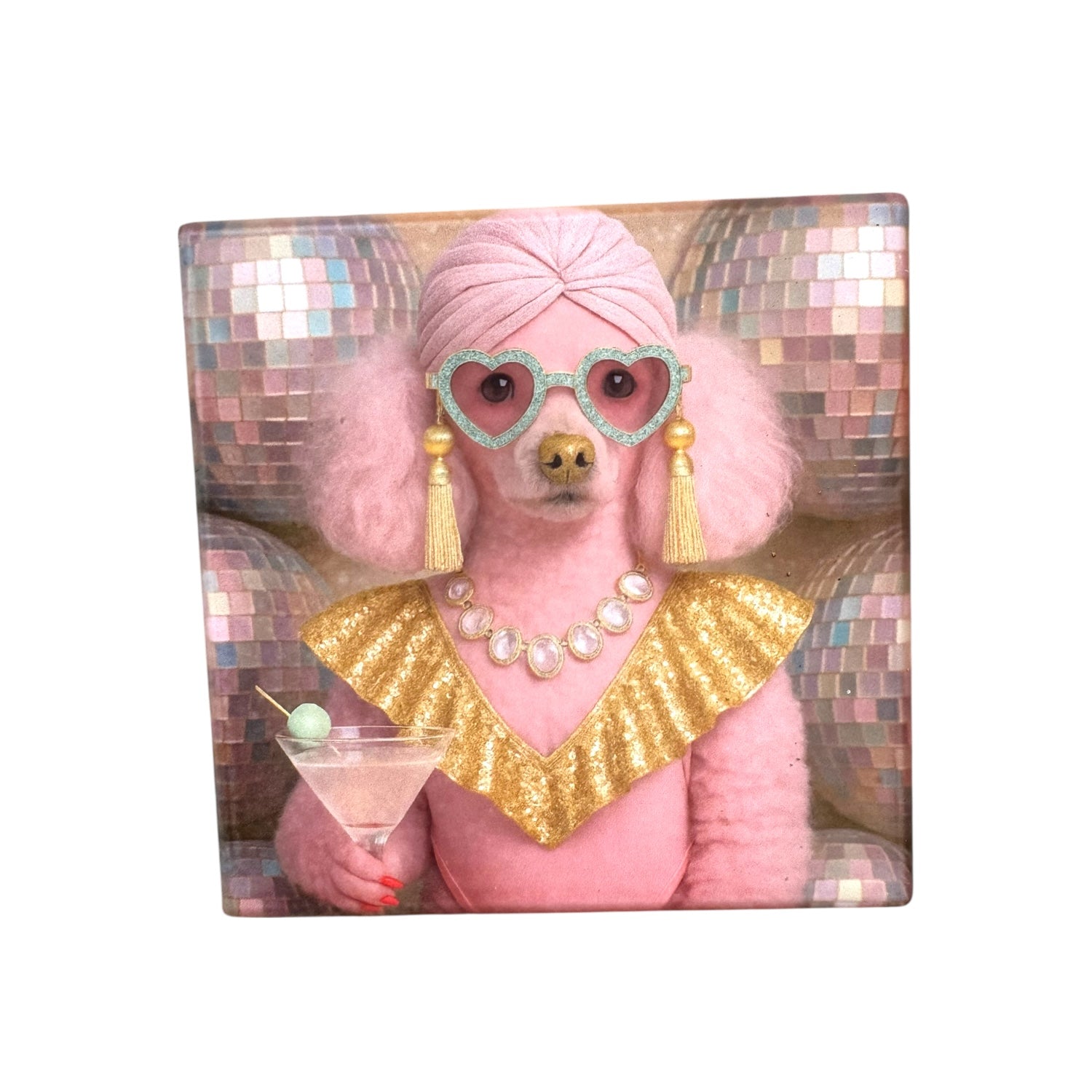 Featuring our decadent existing menagerie of couture pets and fabulous fauna, these ceramic drink coasters transform any tabletop into a glitter-soaked, tongue-in-cheek paradise. From martini-sipping Palm Beach queens to neon-drenched Miami muses, Hollywood-ready LA glamazons, and dazzling roller-skating disco darlings, each creature brings attitude, elegance, and just the right amount of mischief.