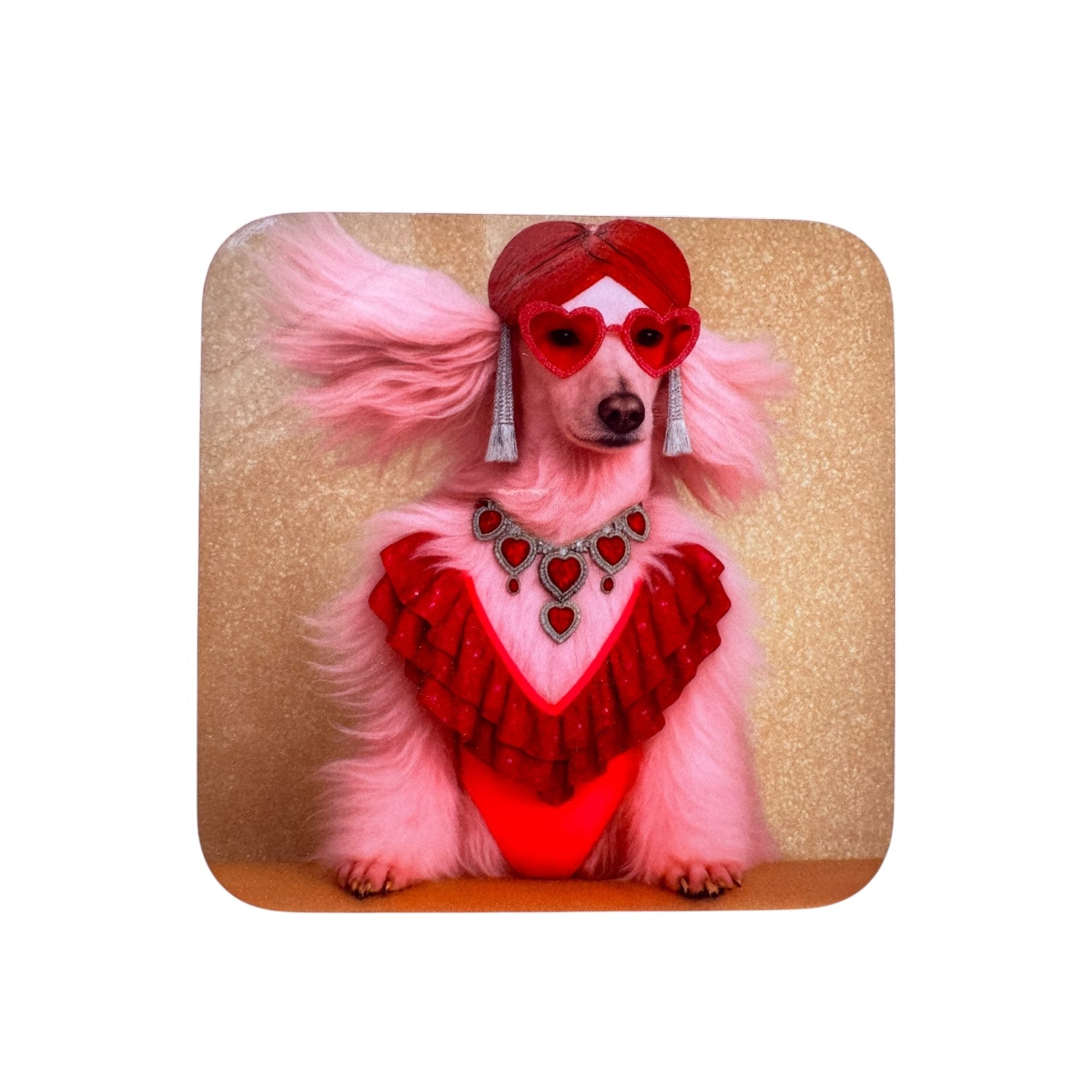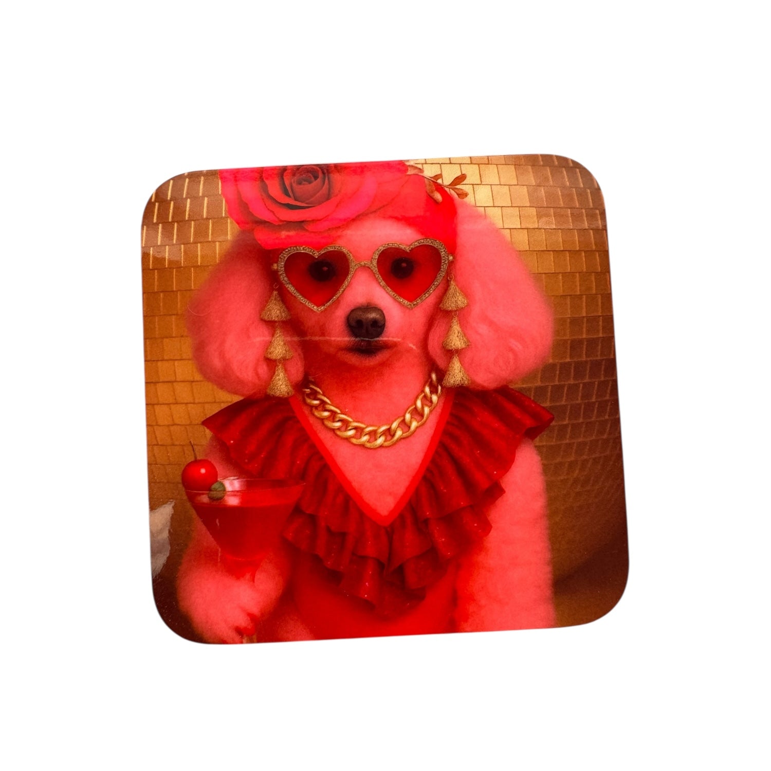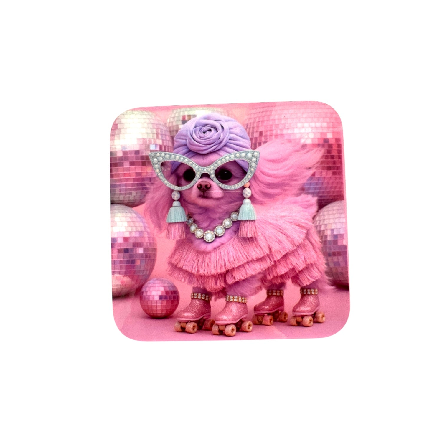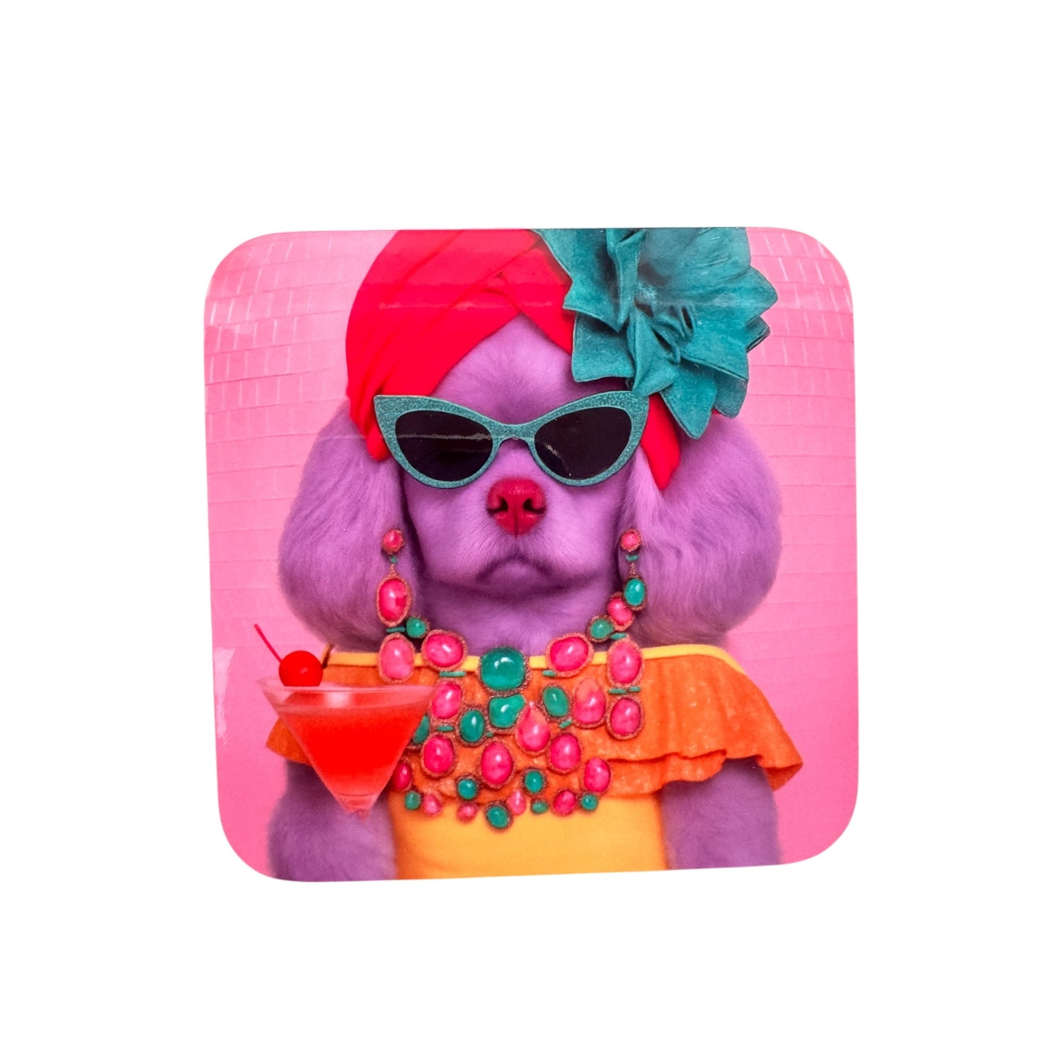 Featuring our decadent existing menagerie of couture pets and fabulous fauna, these ceramic drink coasters transform any tabletop into a glitter-soaked, tongue-in-cheek paradise. From martini-sipping Palm Beach queens to neon-drenched Miami muses, Hollywood-ready LA glamazons, and dazzling roller-skating disco darlings, each creature brings attitude, elegance, and just the right amount of mischief.