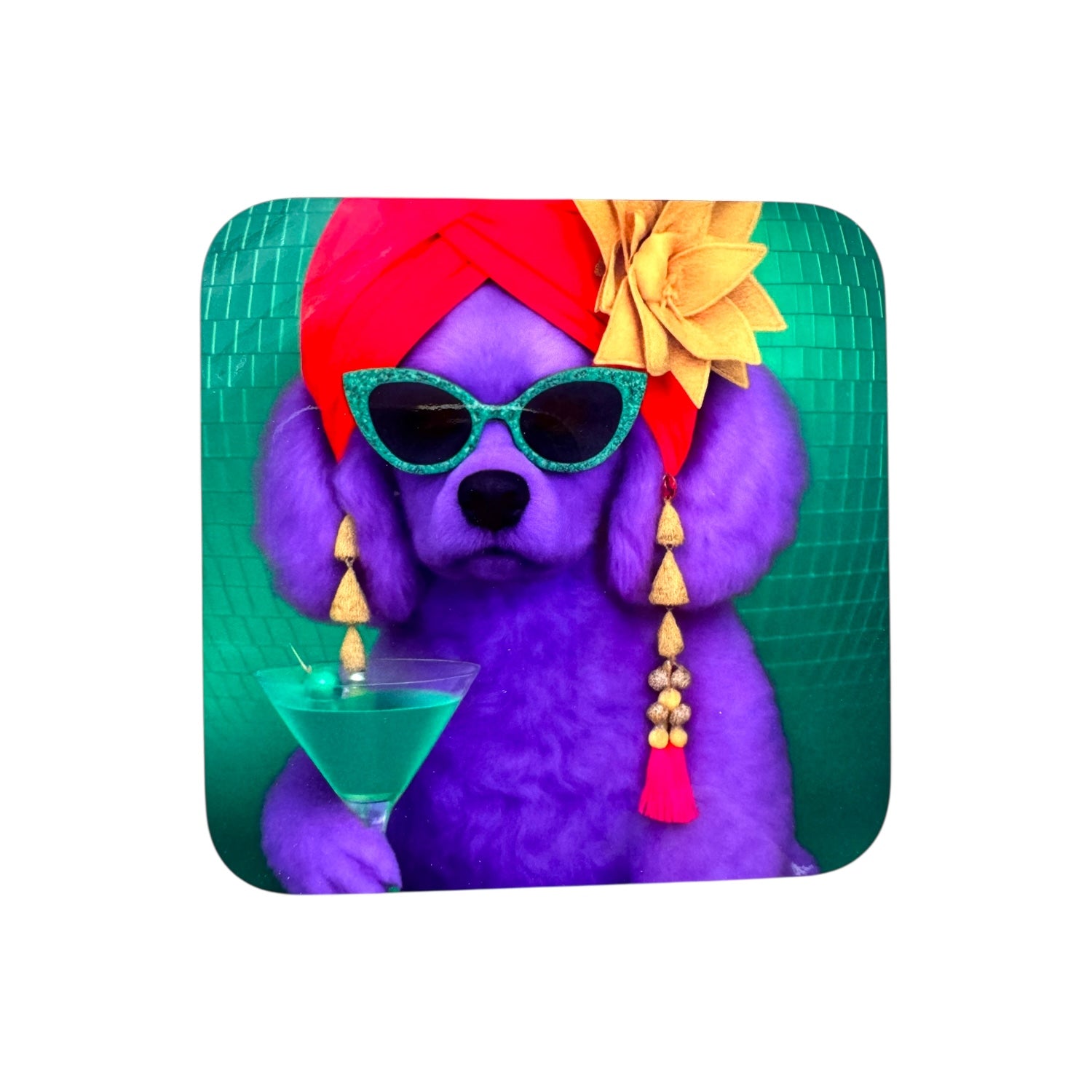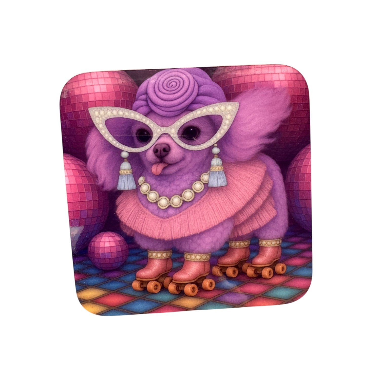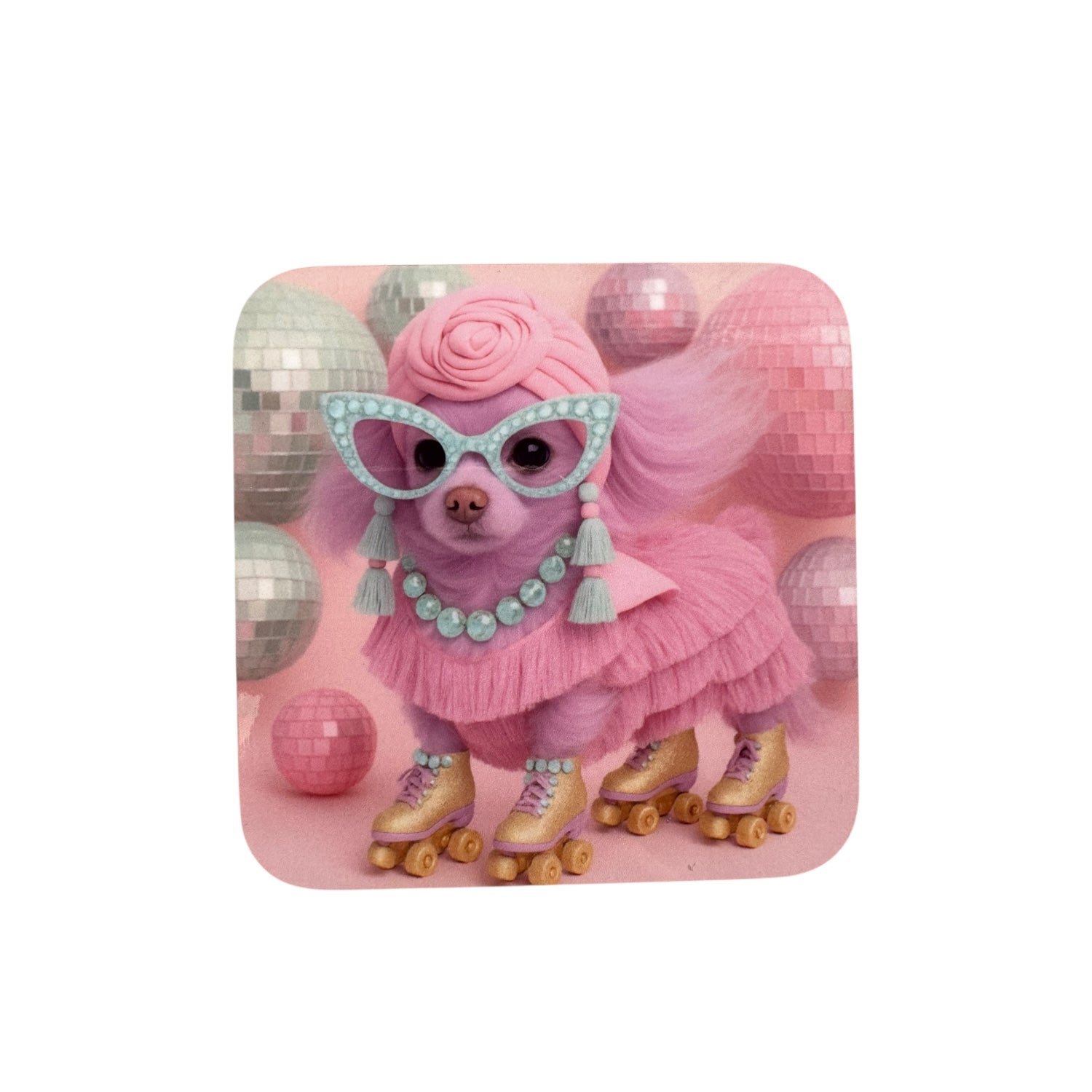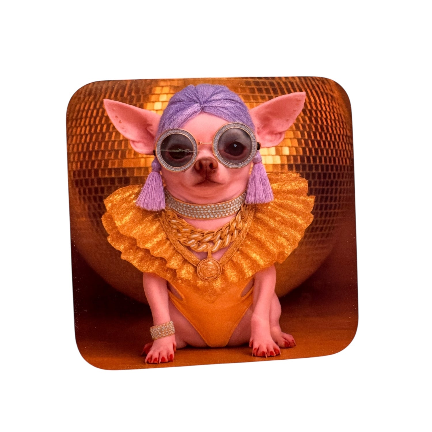 Featuring our decadent existing menagerie of couture pets and fabulous fauna, these ceramic drink coasters transform any tabletop into a glitter-soaked, tongue-in-cheek paradise. From martini-sipping Palm Beach queens to neon-drenched Miami muses, Hollywood-ready LA glamazons, and dazzling roller-skating disco darlings, each creature brings attitude, elegance, and just the right amount of mischief.