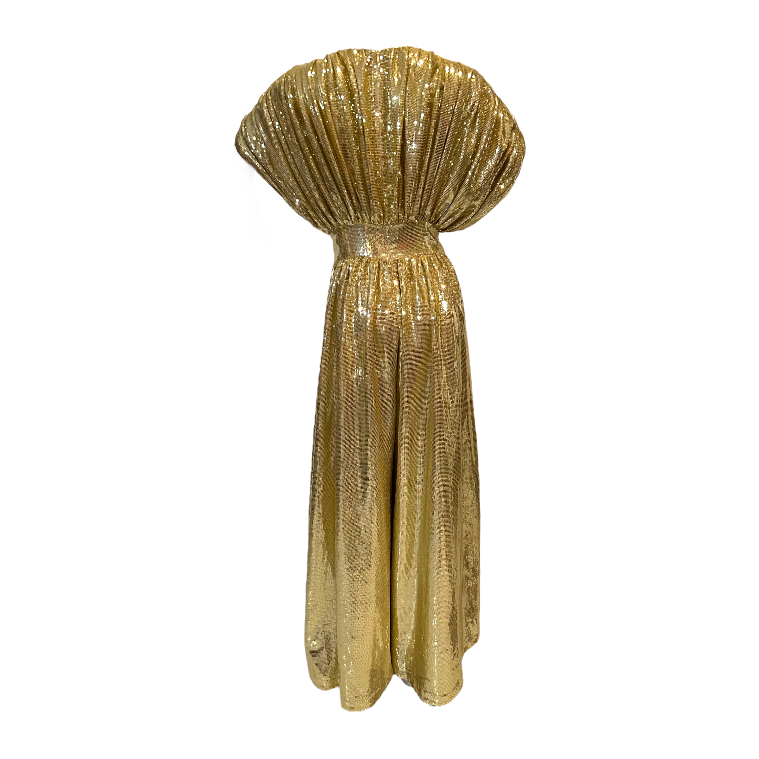 The ultimate in glamour in this luxurious sequin jumpsuit. Fully lined in soft cotton jersey. Matching turban not included.