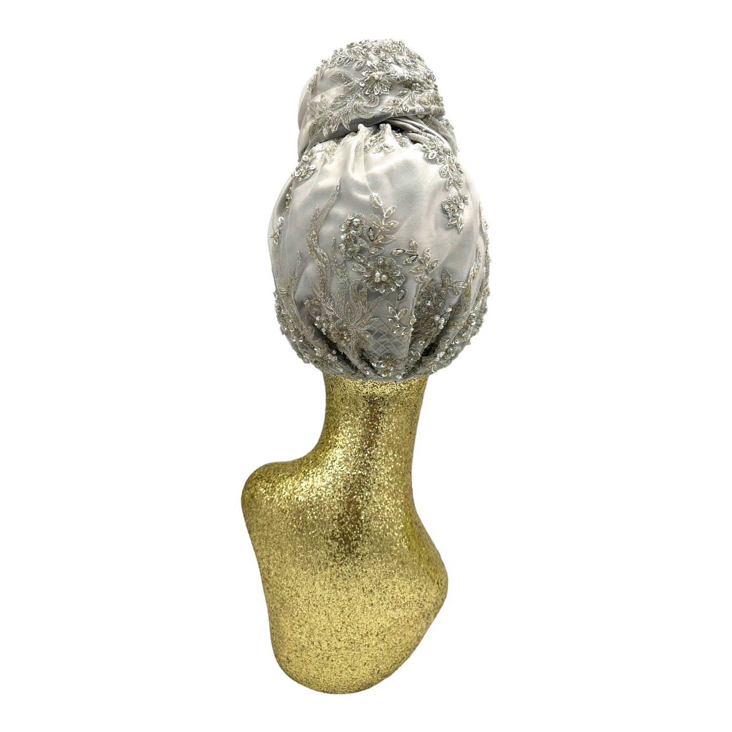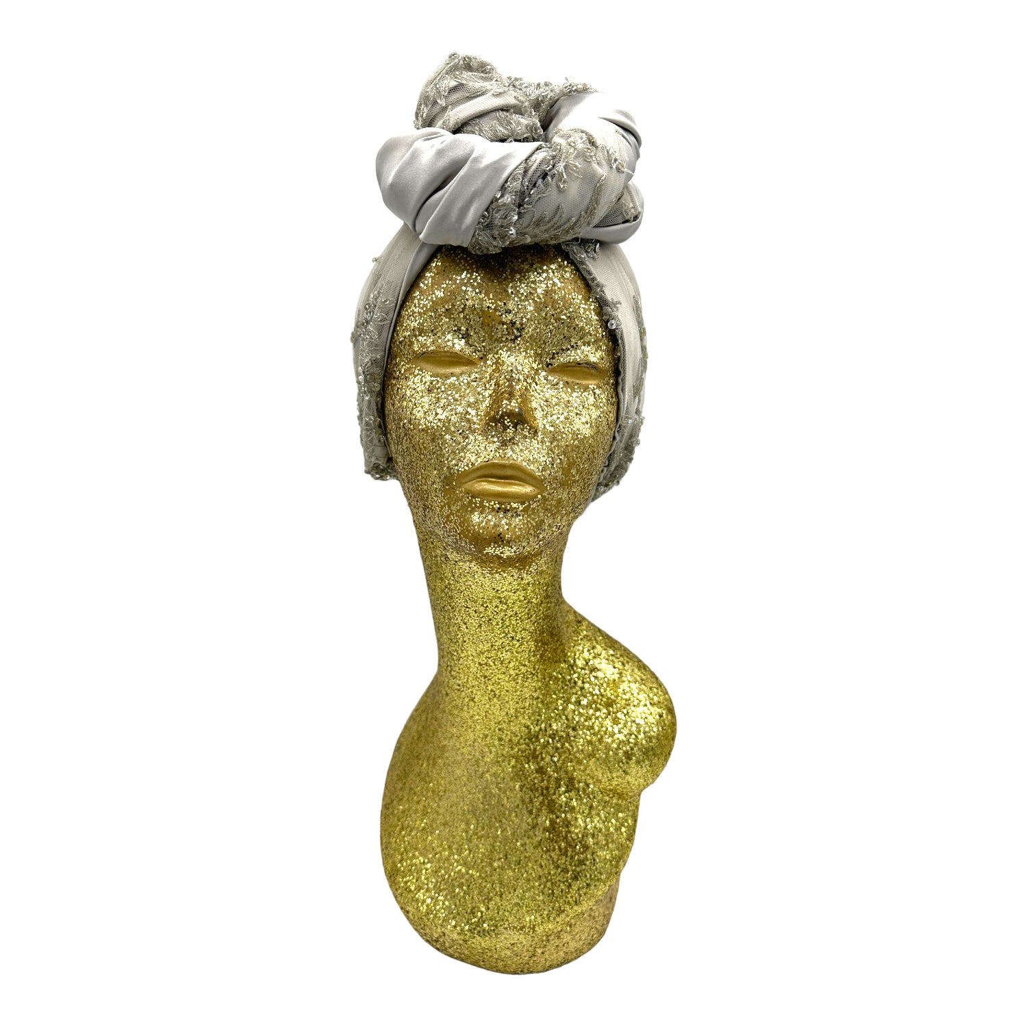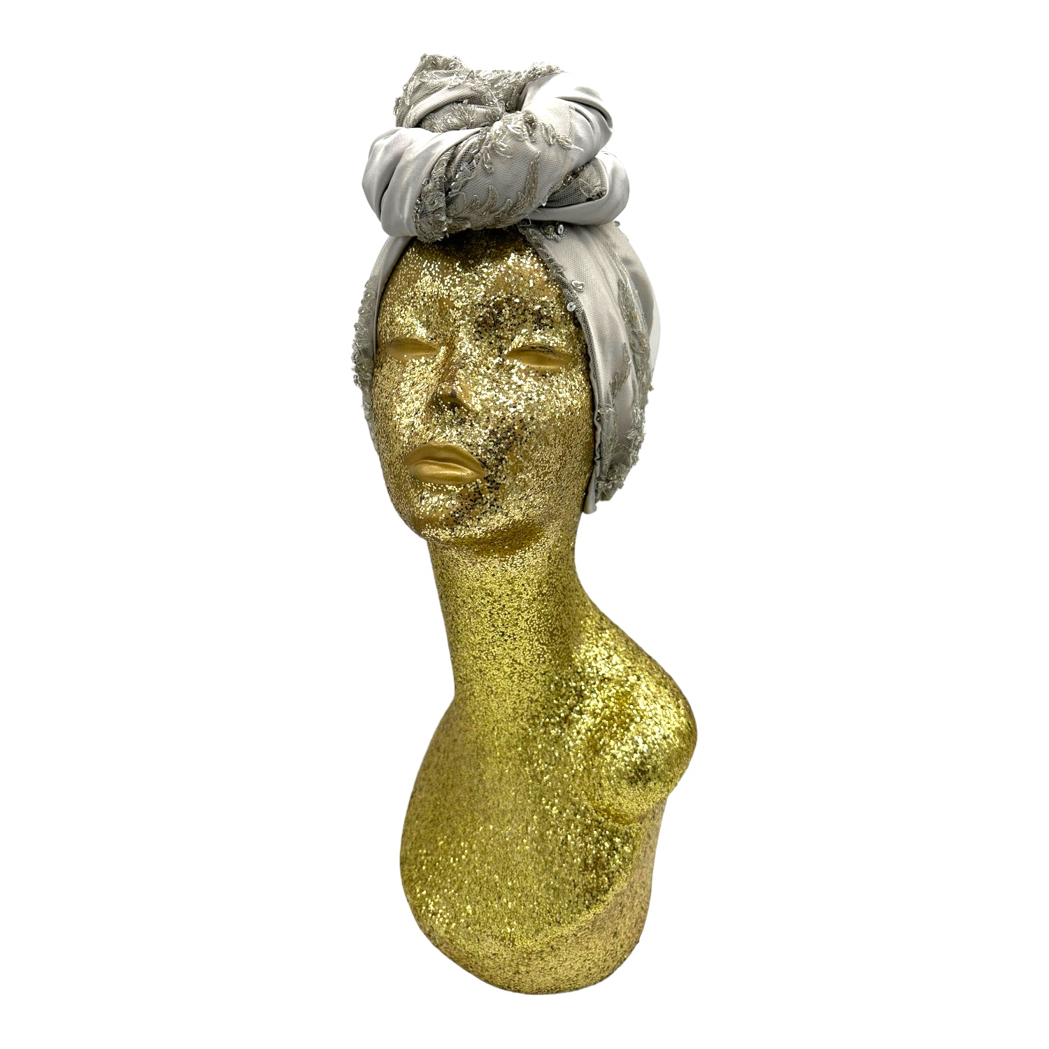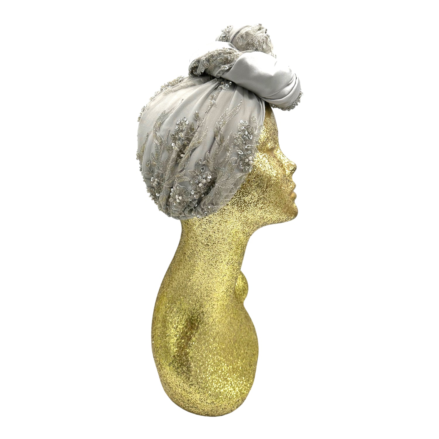 Luxurious reversible turban made in silk charmeuse and sequin. The most versatile of all the styles . This turban comes ready tied but please check our turban tutorial link below.