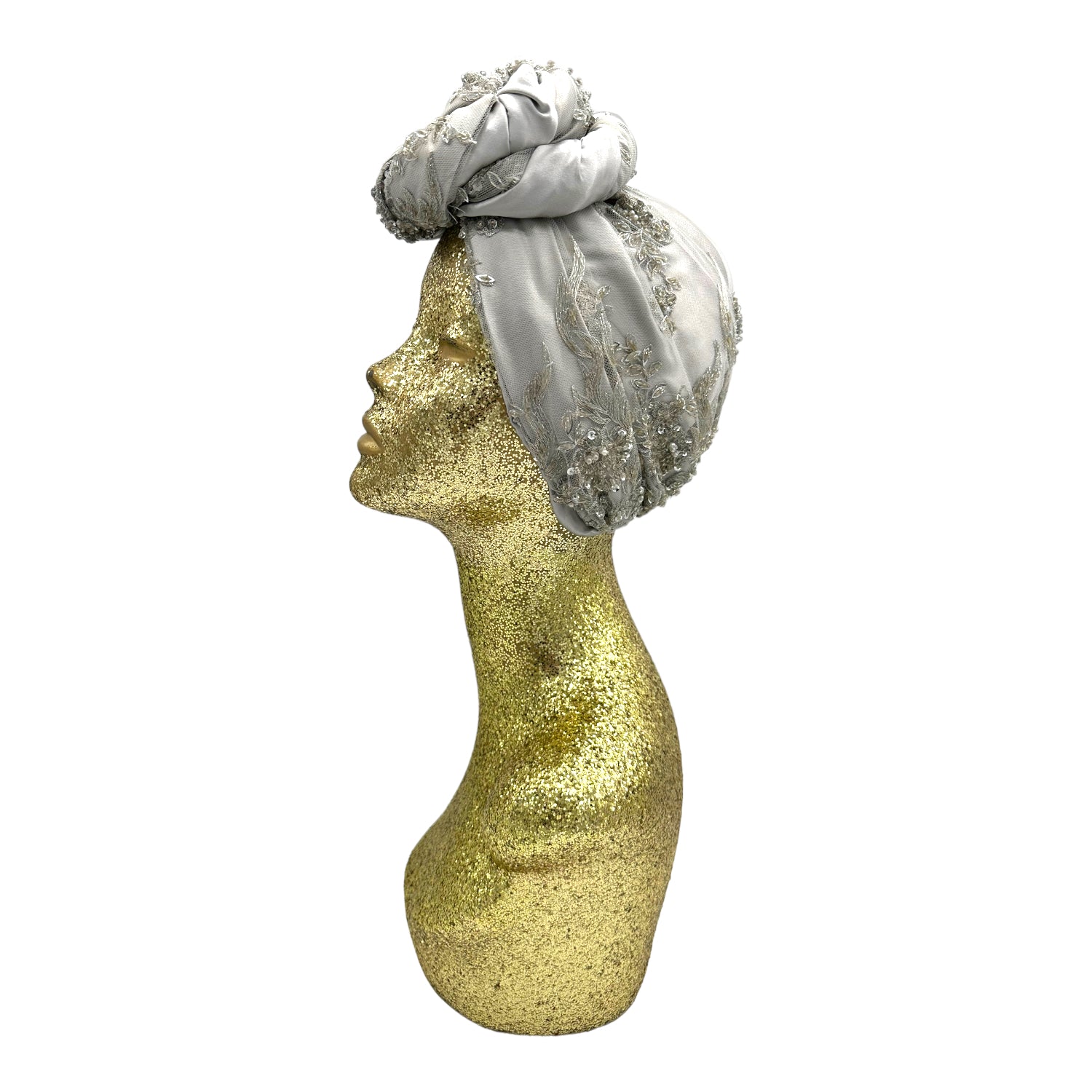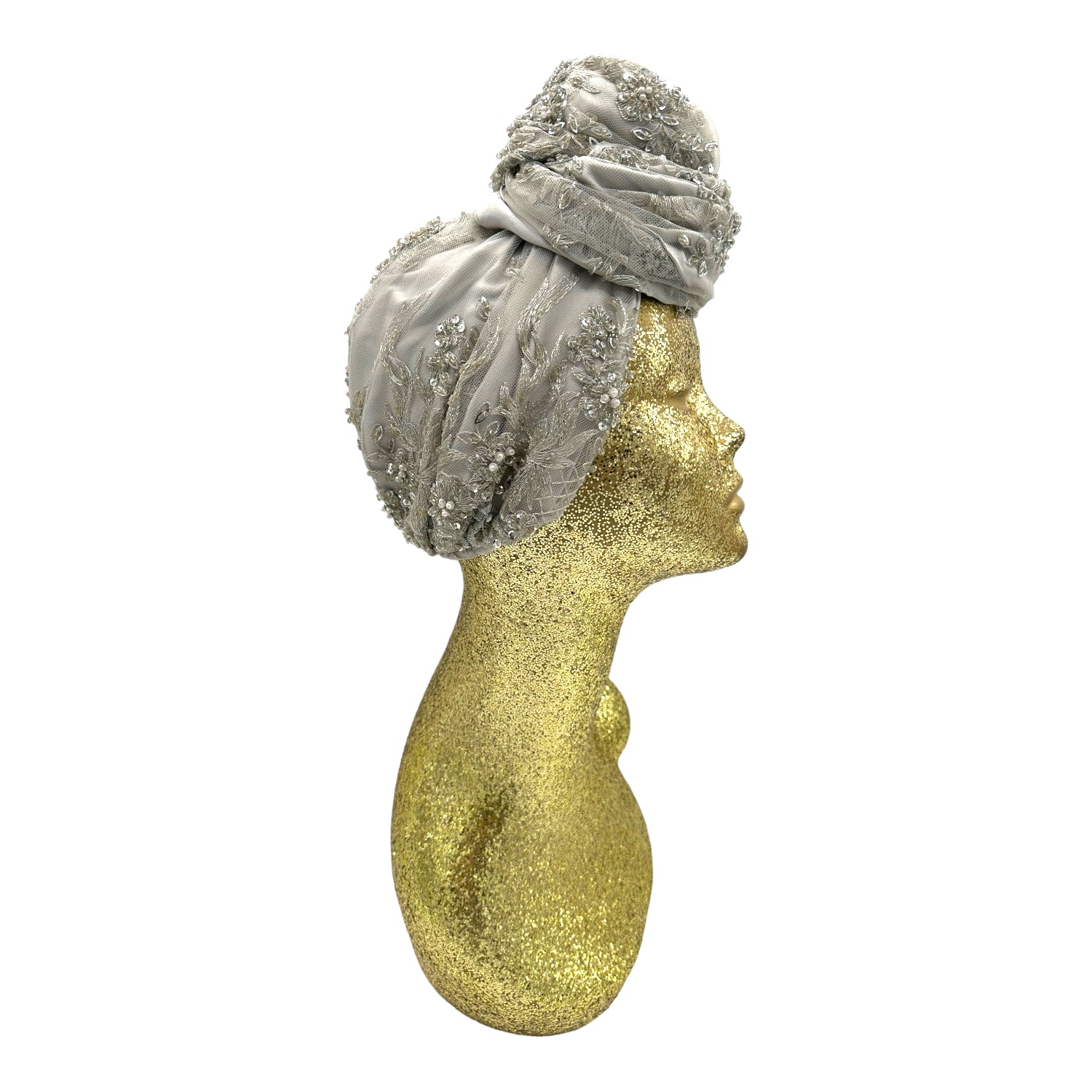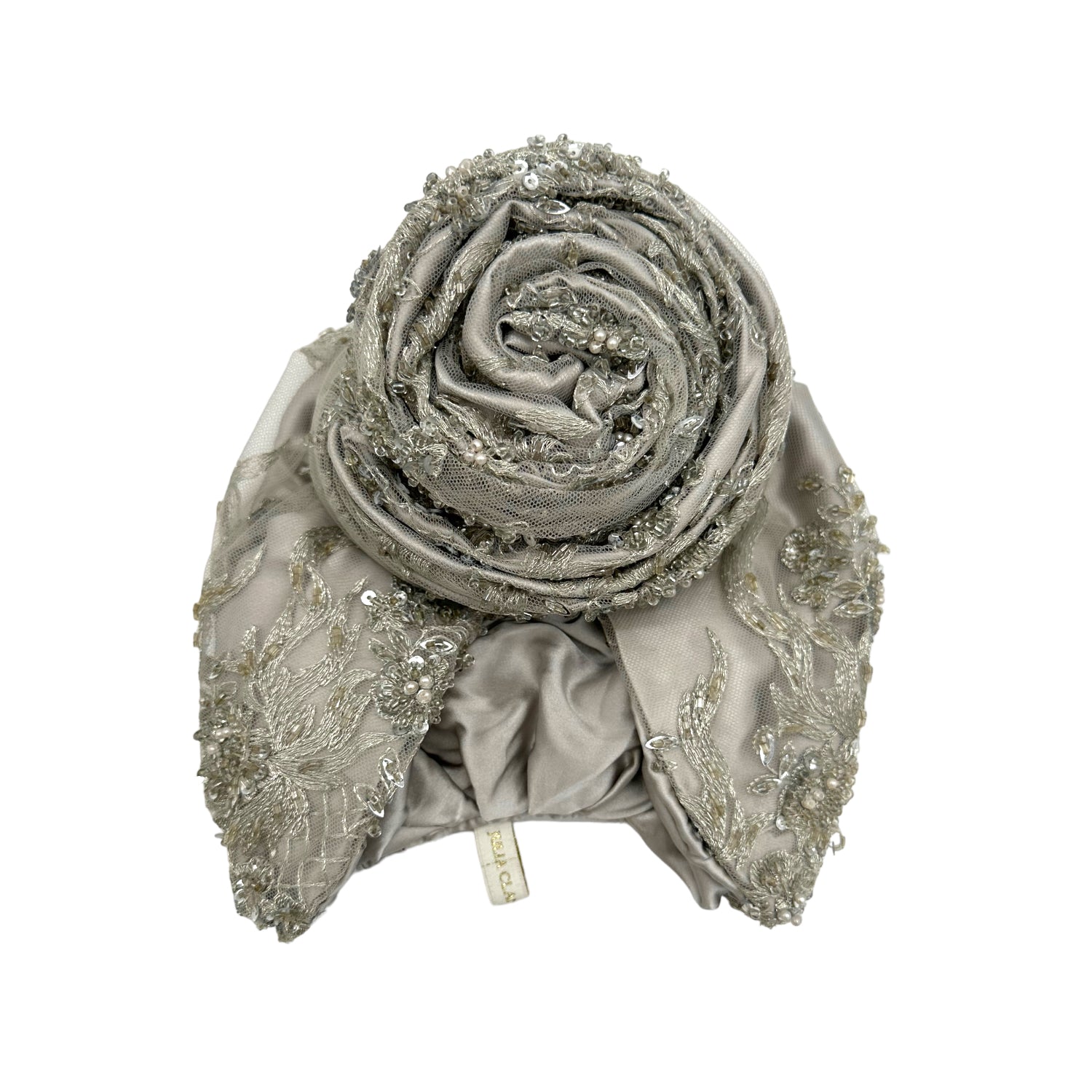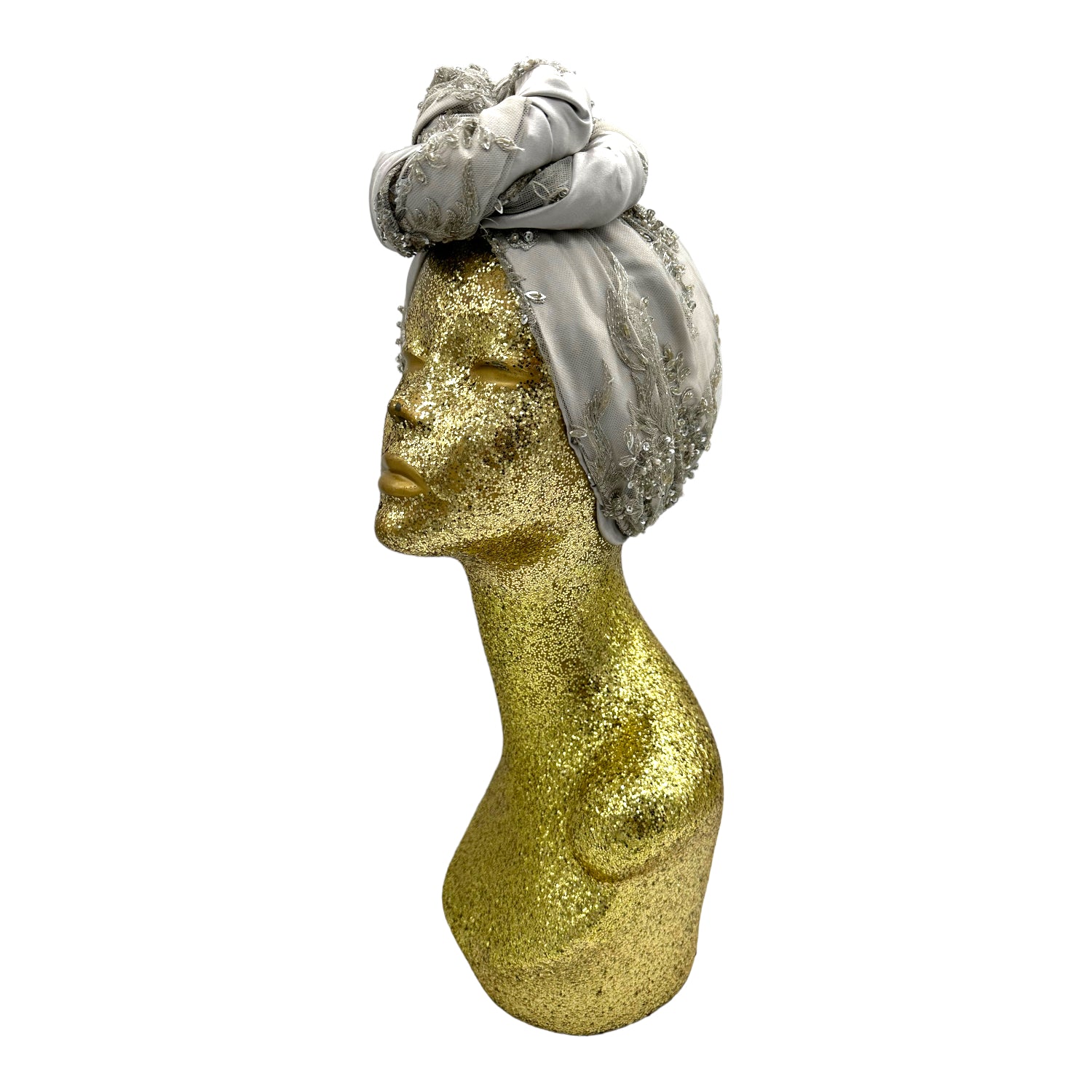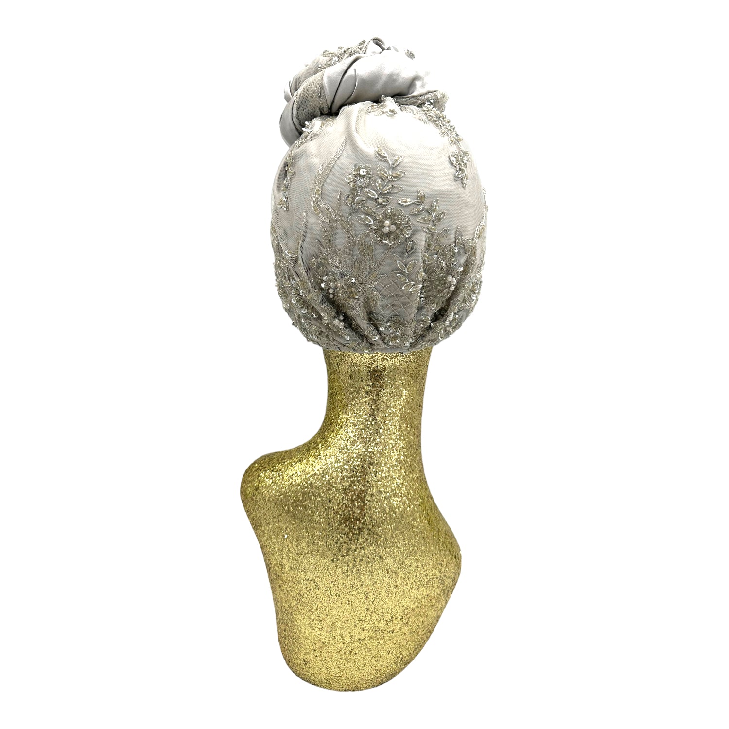 Luxurious reversible turban made in silk charmeuse and sequin. The most versatile of all the styles . This turban comes ready tied but please check our turban tutorial link below.