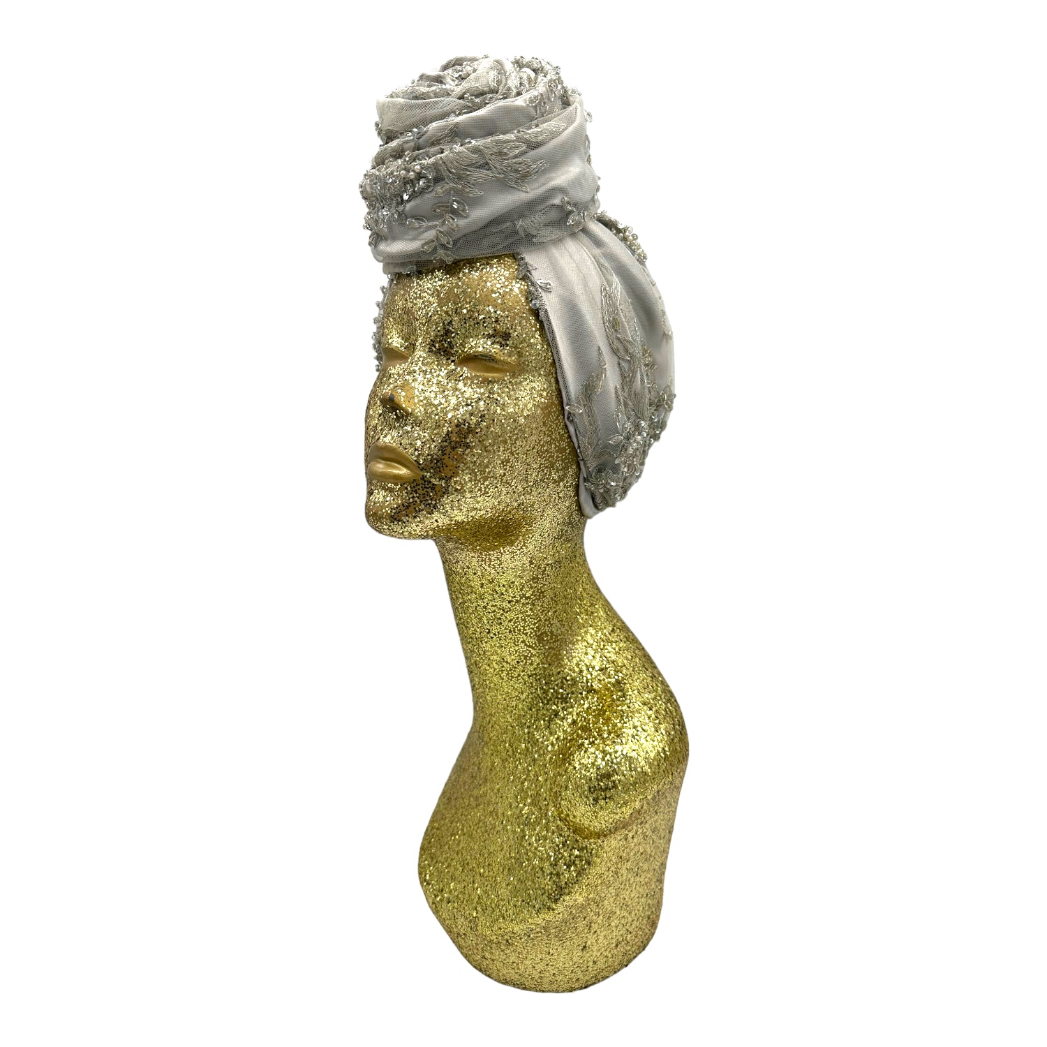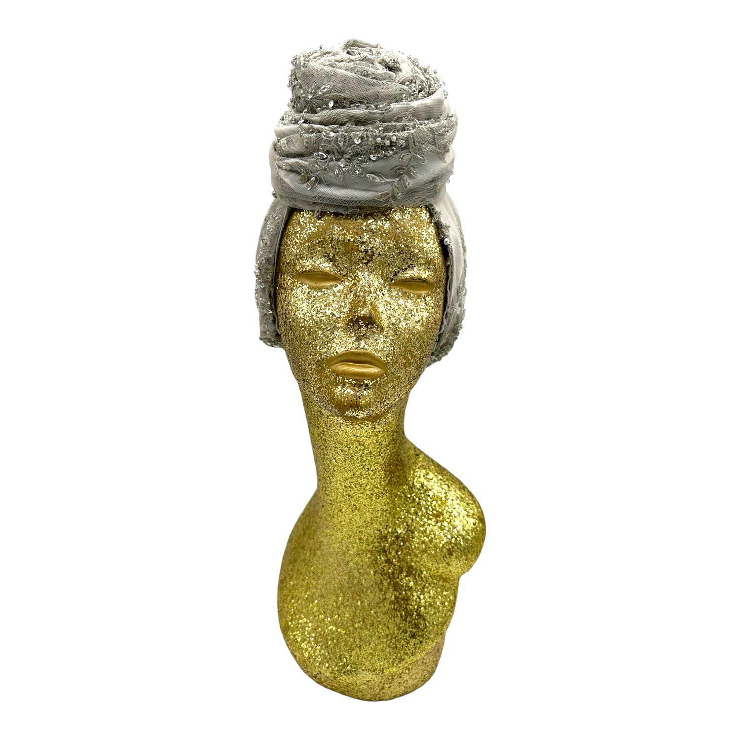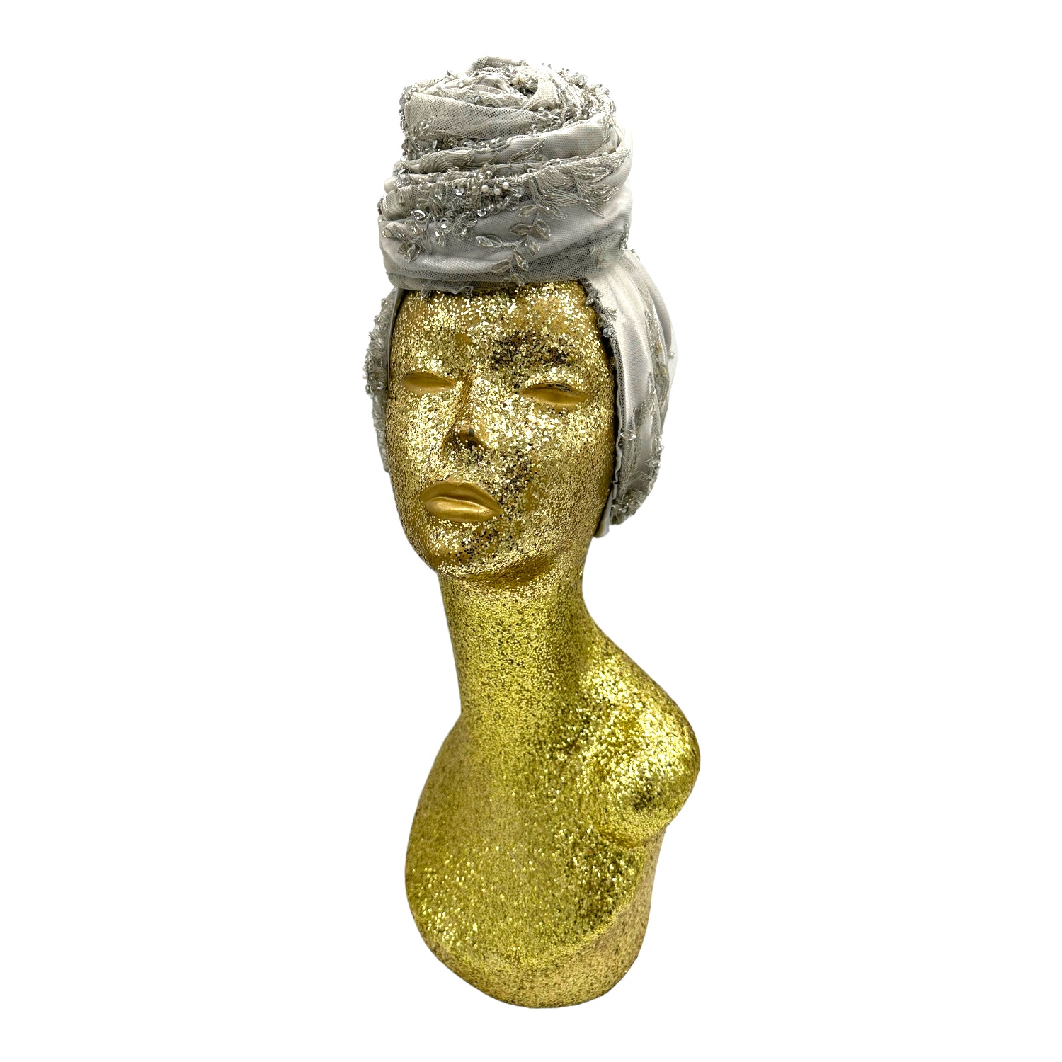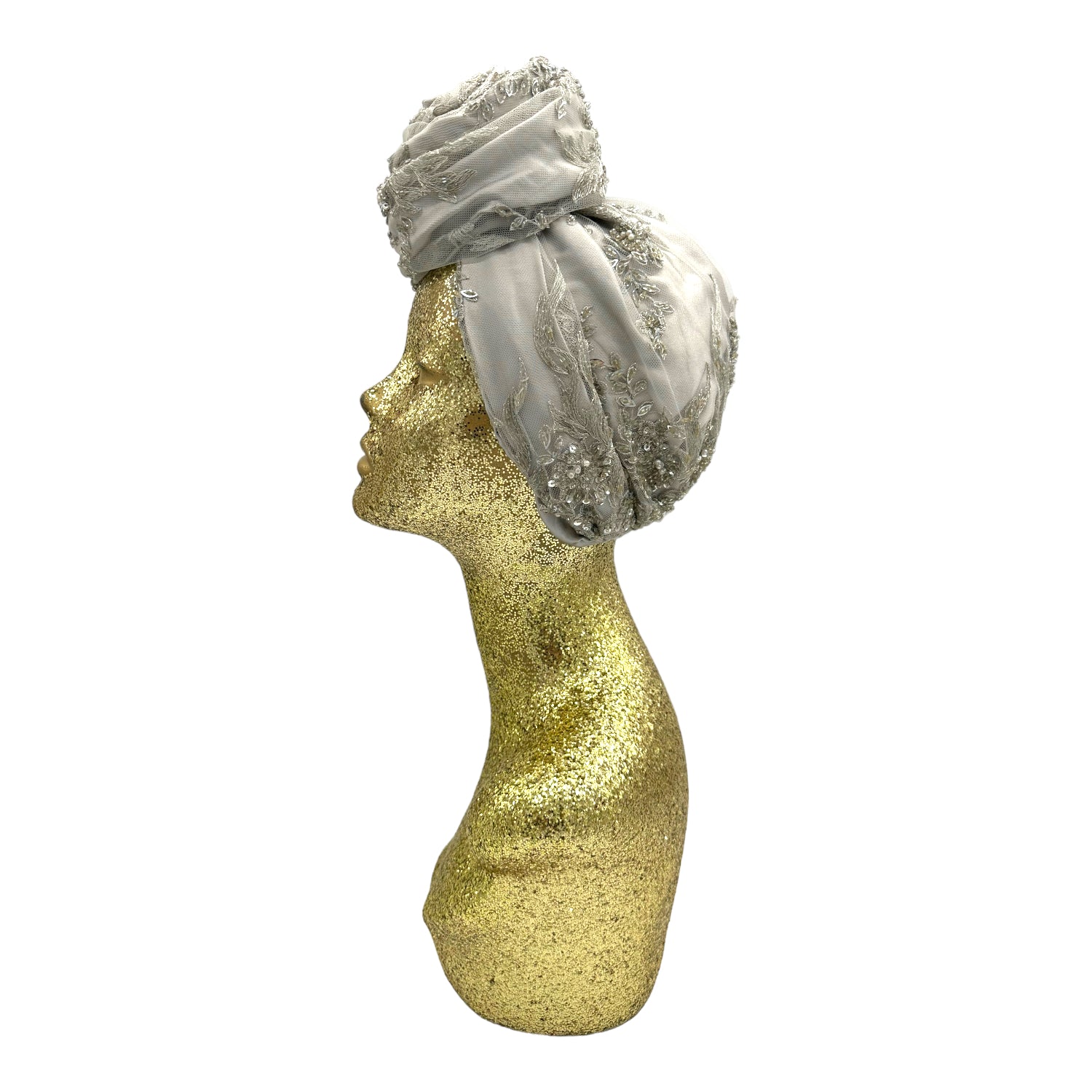 Luxurious reversible turban made in silk charmeuse and sequin. The most versatile of all the styles . This turban comes ready tied but please check our turban tutorial link below.
