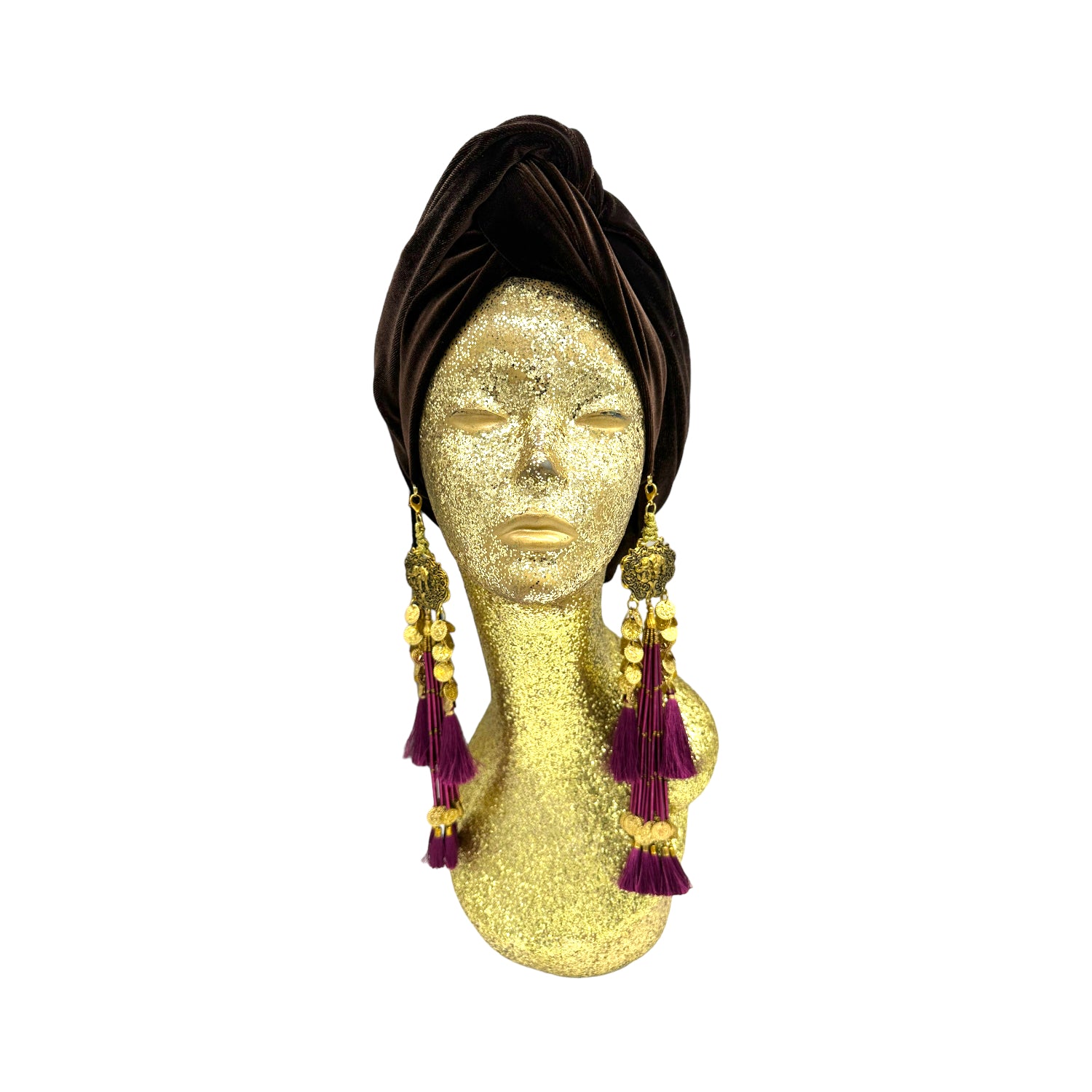 The Julia Clancey Turban is the epitome of glamour and timelessness. Inspired by Old Hollywood, this turban instantly add glamour to any outfit. It is designed to fit all head sizes and features removable tassel earrings, giving you the freedom to customize your look. This turban is made with care in Los Angeles, guaranteeing its quality. Get ready to turn heads with this stunning accessory.