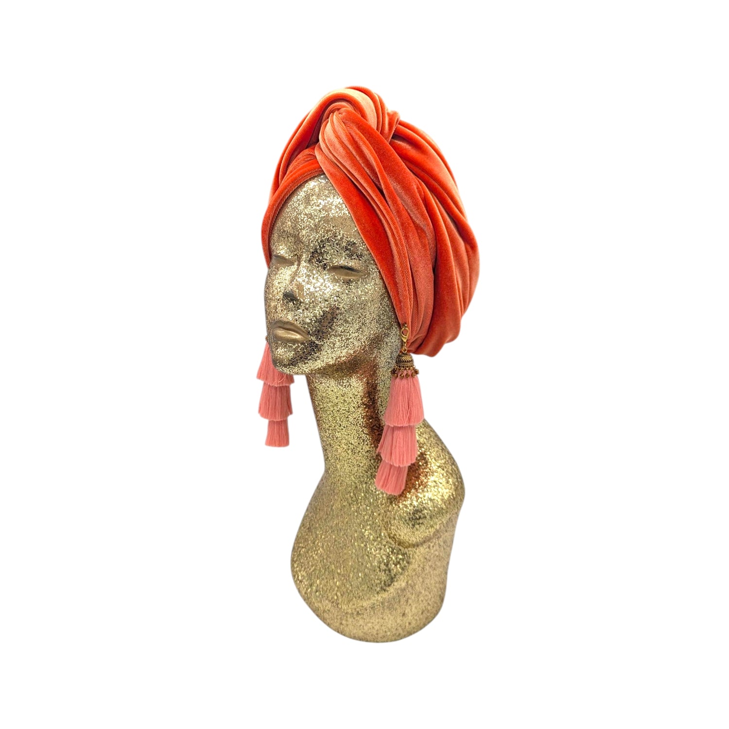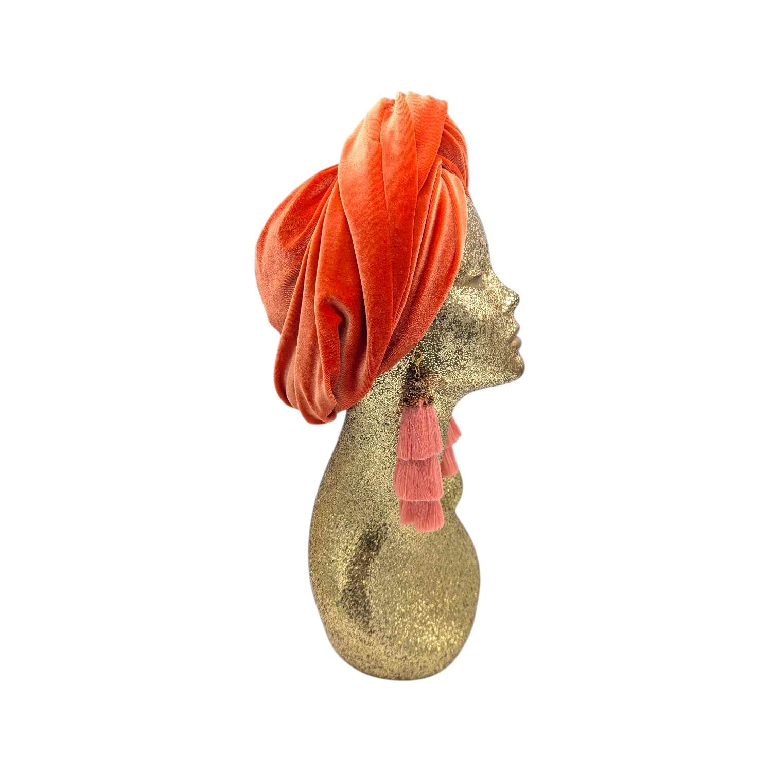 Jaffa Tangerine Coral Swinglette Velour Turban