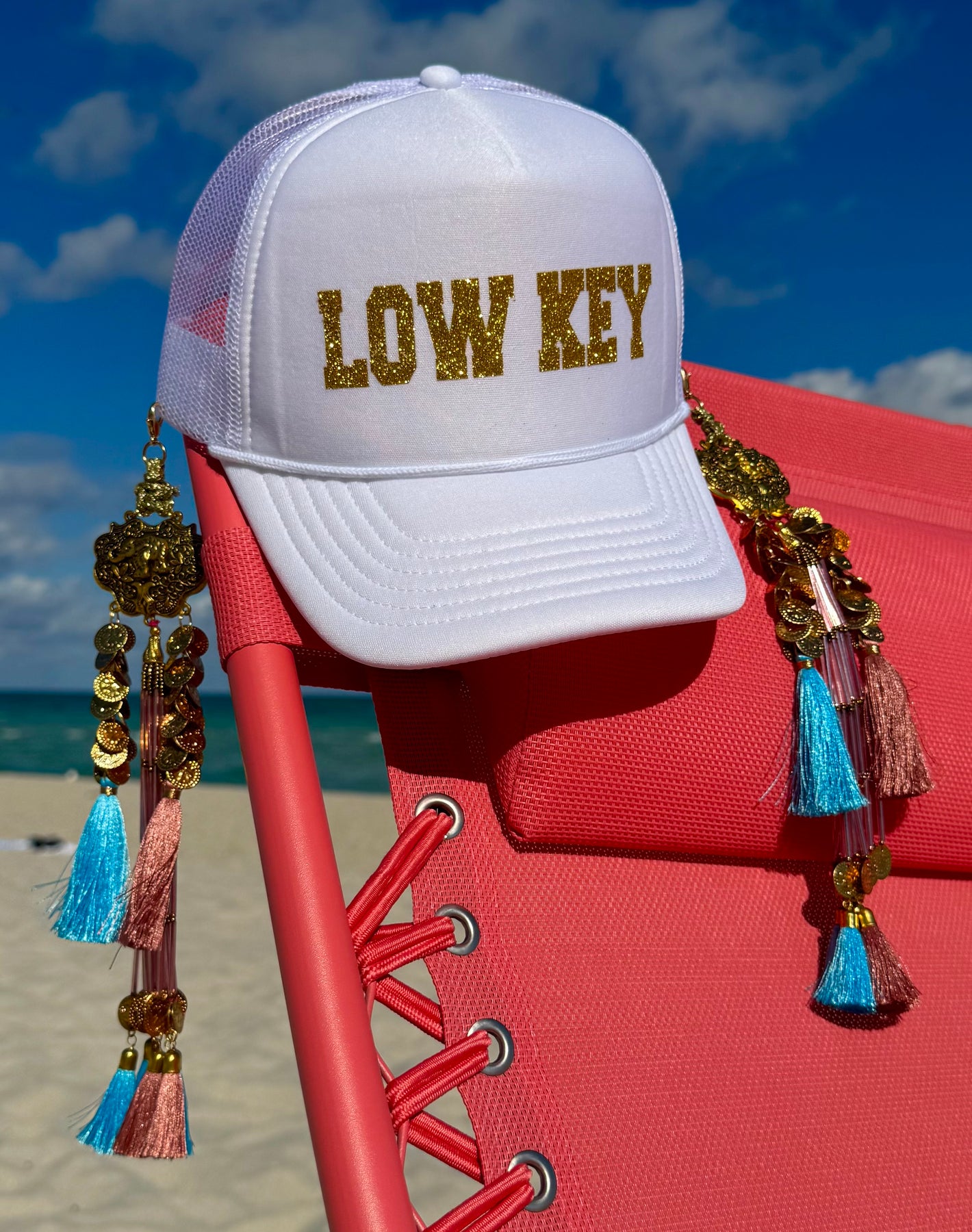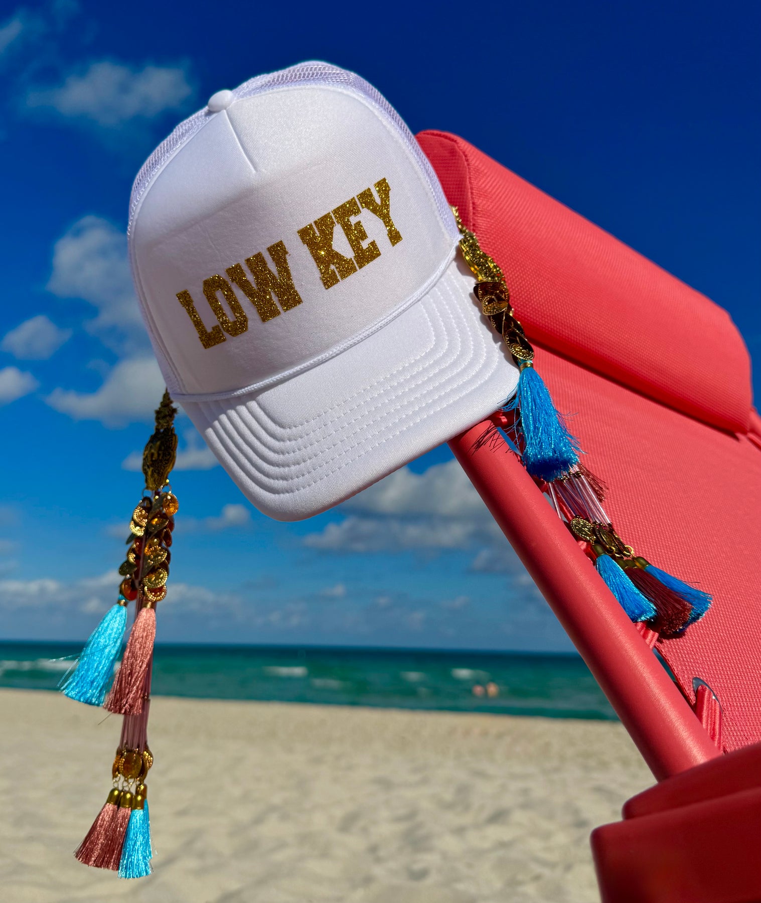 TURN UP THE FUN WITH OUR TASSELTASTIC LOW KEY TASSEL TRUCKER CAP — A STATEMENT, EVERYDAY CAP DESIGNED TO BRING A LITTLE DISCO ENERGY TO ANY LOOK.