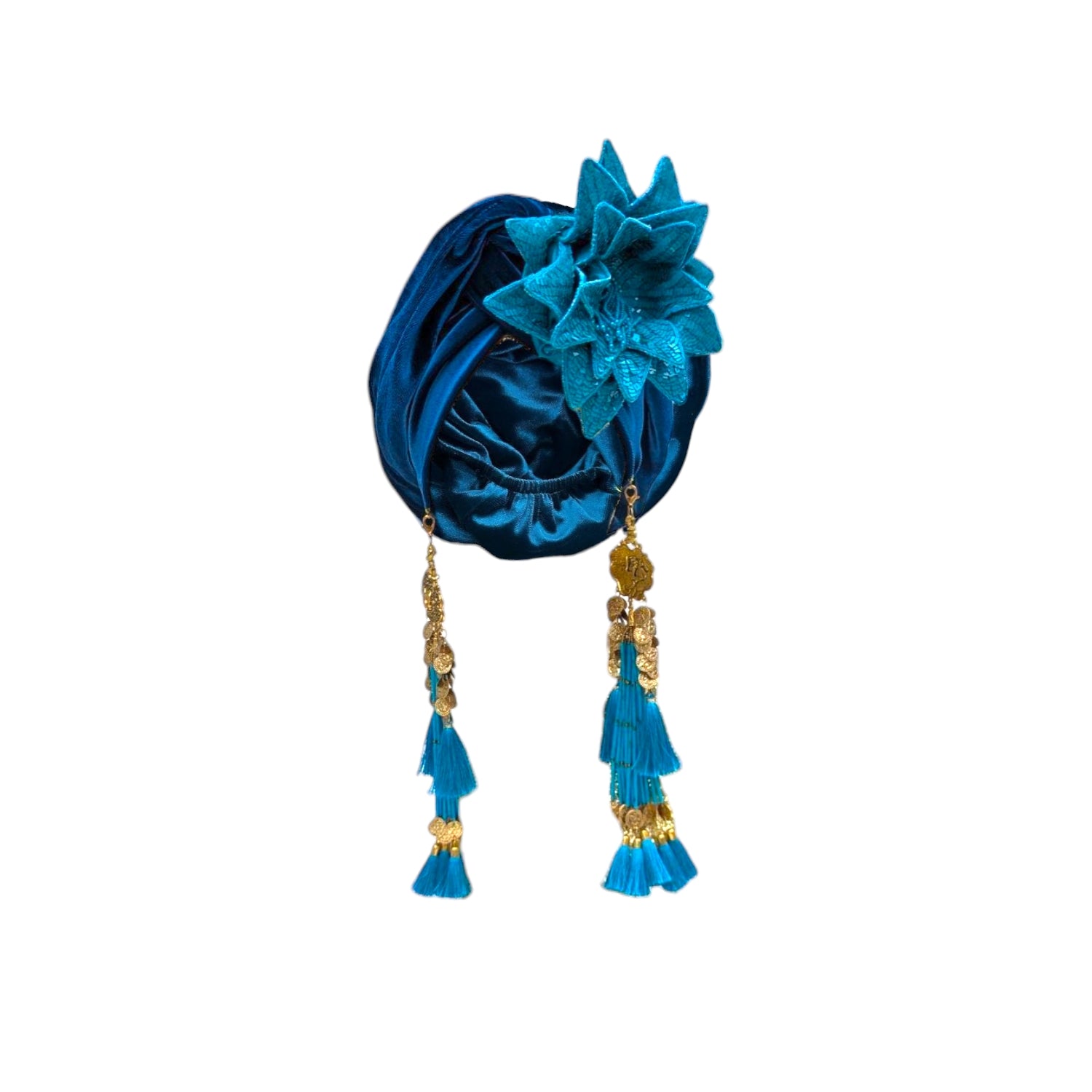 Wear it on your turban or style in your hair or clothing .This Classic Madam style offering full  glamour coverage in soft velour teamed with hand made cotton earrings. Soft enough to pop inside the turban should you wish to wear without. The earrings are made by artisans in India and turbans made locally in Los Angeles. This is a direct to consumer product.