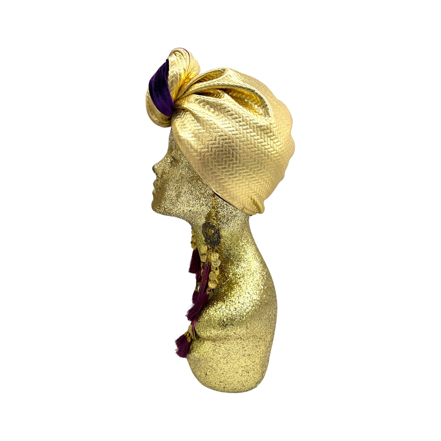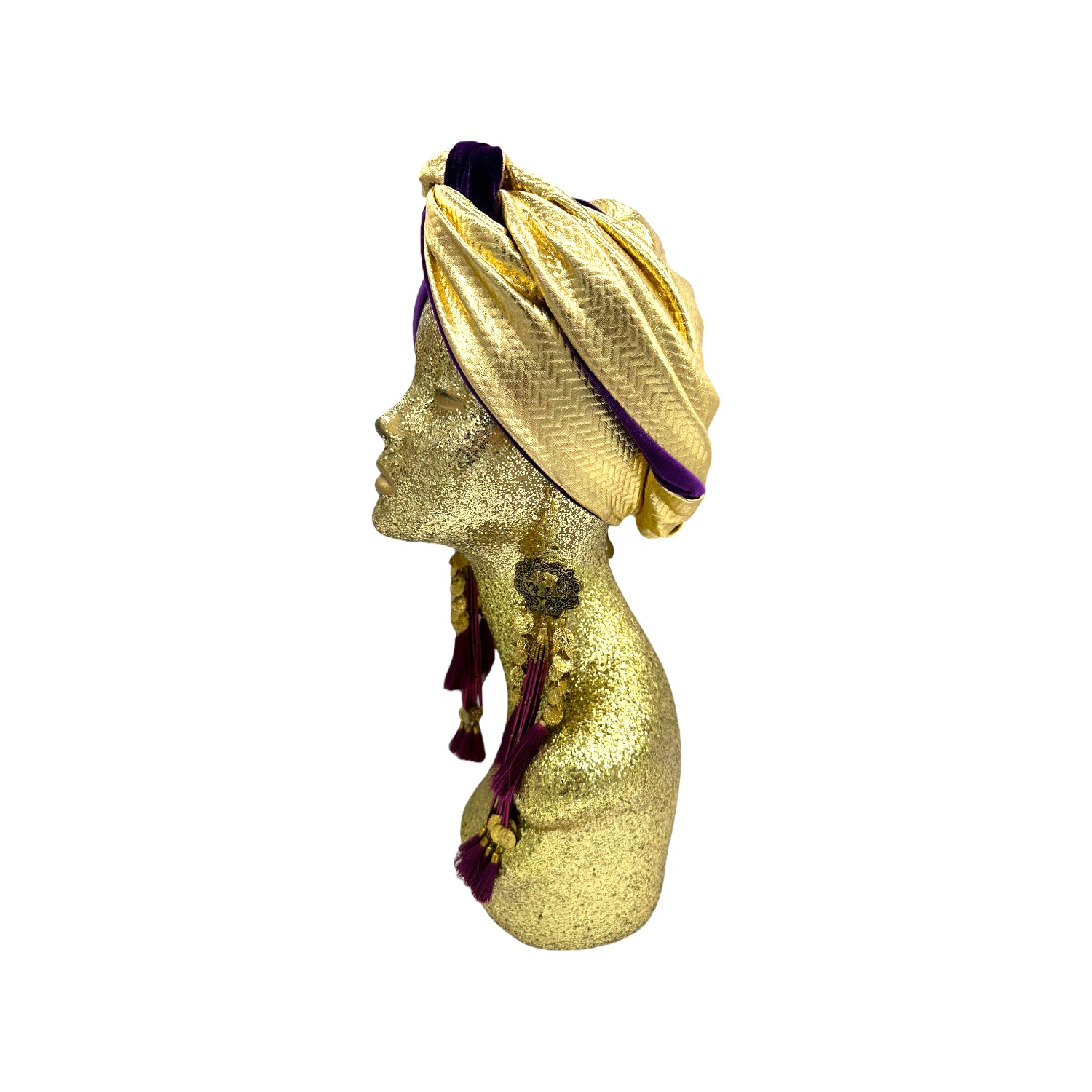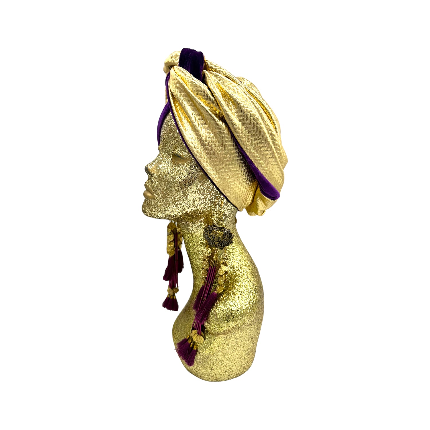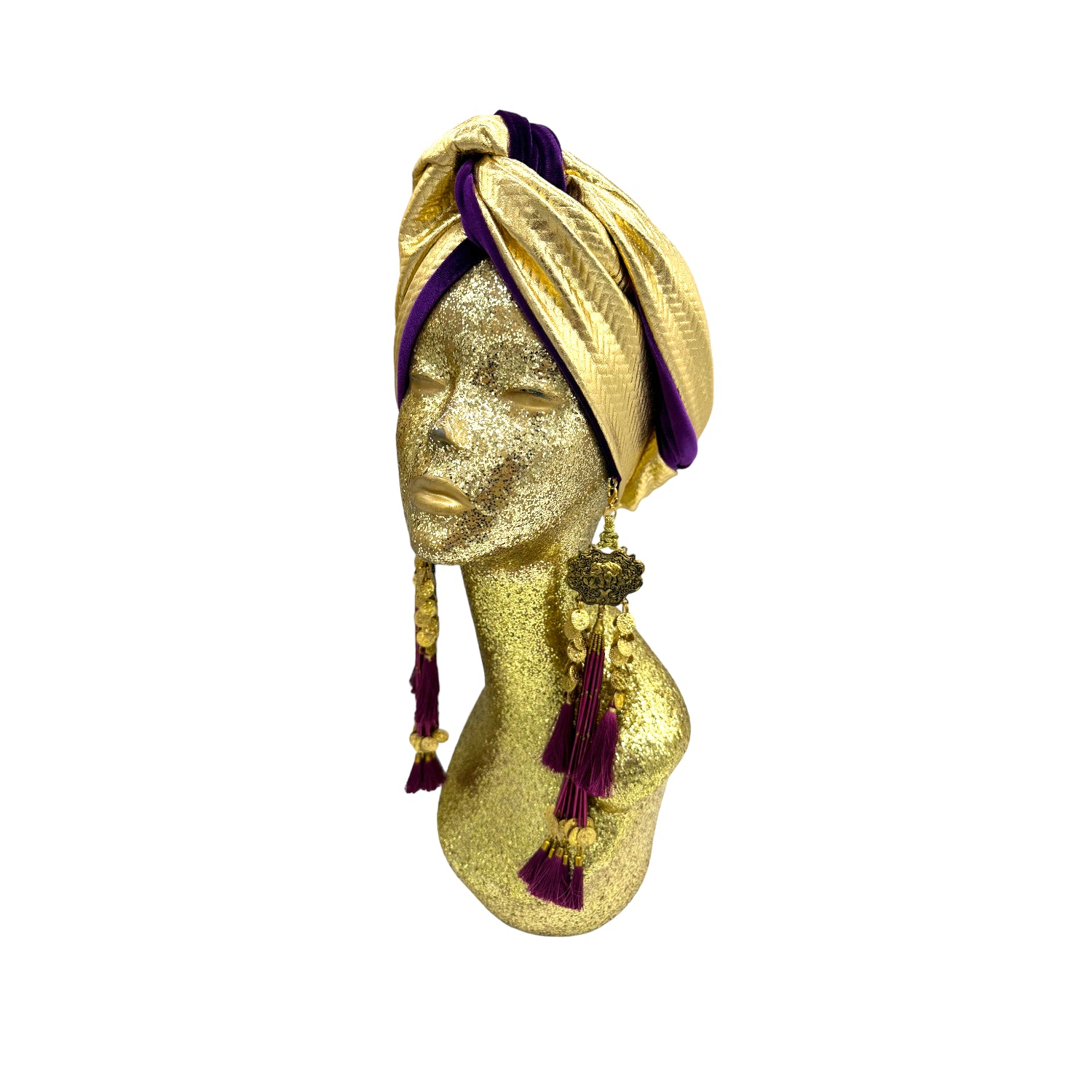 The ultimate in fabulous! This turban offers full coverage and full glam. With a simple twist to get perfect fit. Instant chic in seconds. The earrings are removable. Made with love in Los Angeles. These are direct to consumer products. One size fabulously fits all but please look at our turban tutorials before buying. This style is our best seller as super easy to get perfect fit.