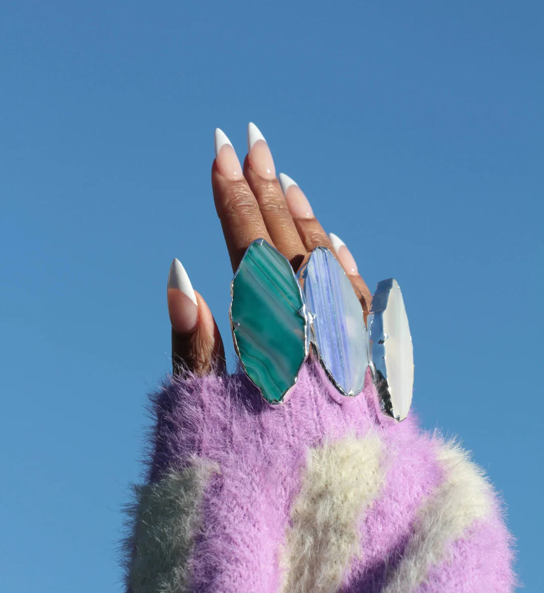 Our sterling silver agate stone range ‘GRANDE’ has finally arrived after great demand. This premium, luxurious range is bound to stand out from the crowd wherever you go! Our rings are designed and handmade for people wanting the ultimate statement ring, but this time in 925 sterling silver. Compared to our ULTRA MEGA Ring , this range offers the same size and shape, all you must do is decide what colour you want choose to go with your outfit! Colour intensities can vary as these are natural semi-precious gemstones. Each ring will arrive in a YAA YAA LONDON jewellery box making them a beautiful gift item too.