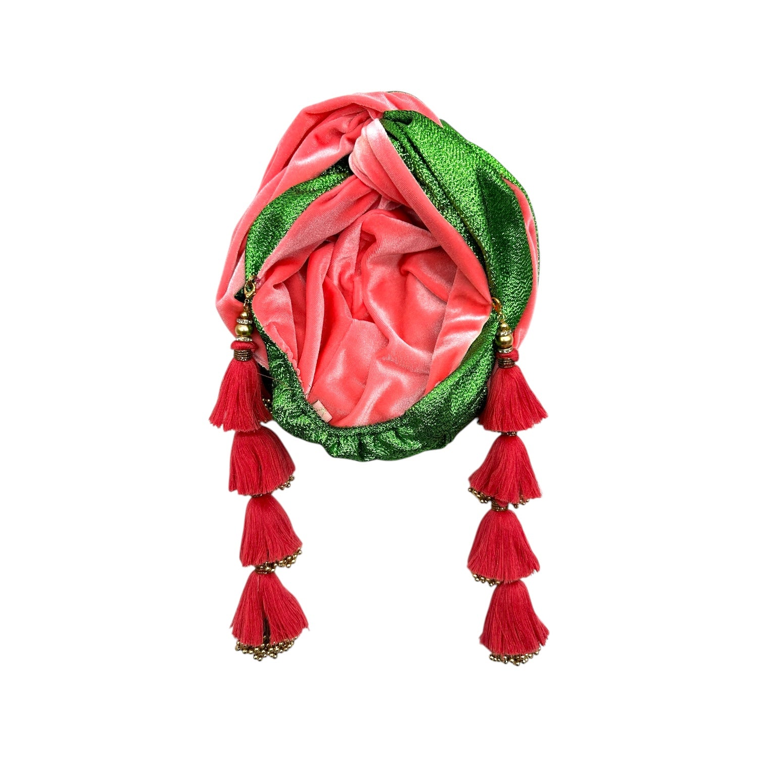 The icing on the cake with this glam reversible turban. wear it full gold glitz or with the soft  velour. The lurex chacha tassels are removable and can be worn with our other tassel styles. The tassels are made by artisans in India and turbans with love in Los Angeles.
