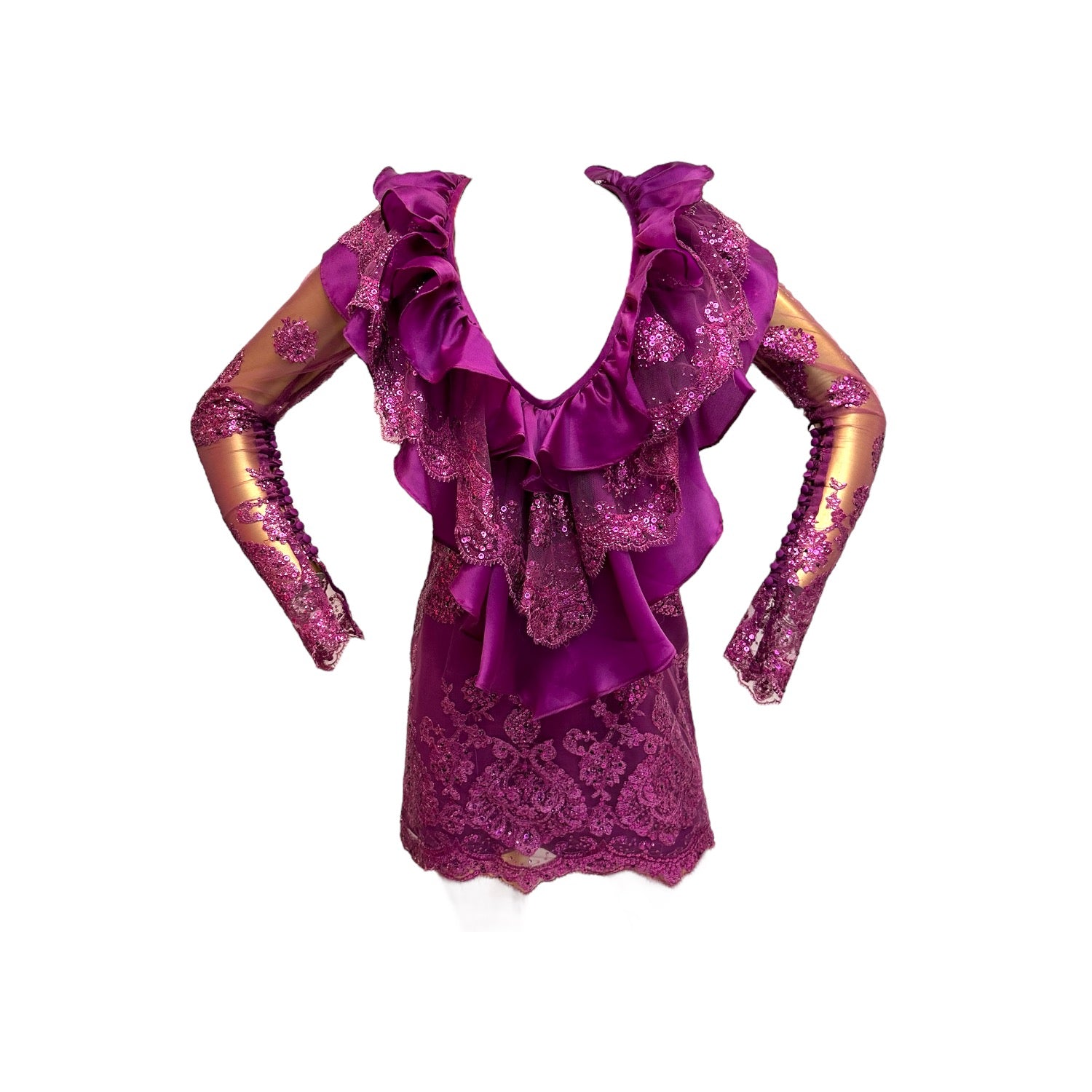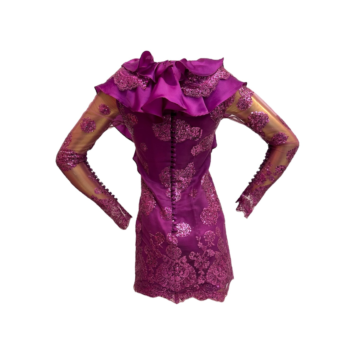 Perfect glam cocktail dress ! Hand embroidered lace dress with silk lining. Waistline 27". Fully bespoke service available.