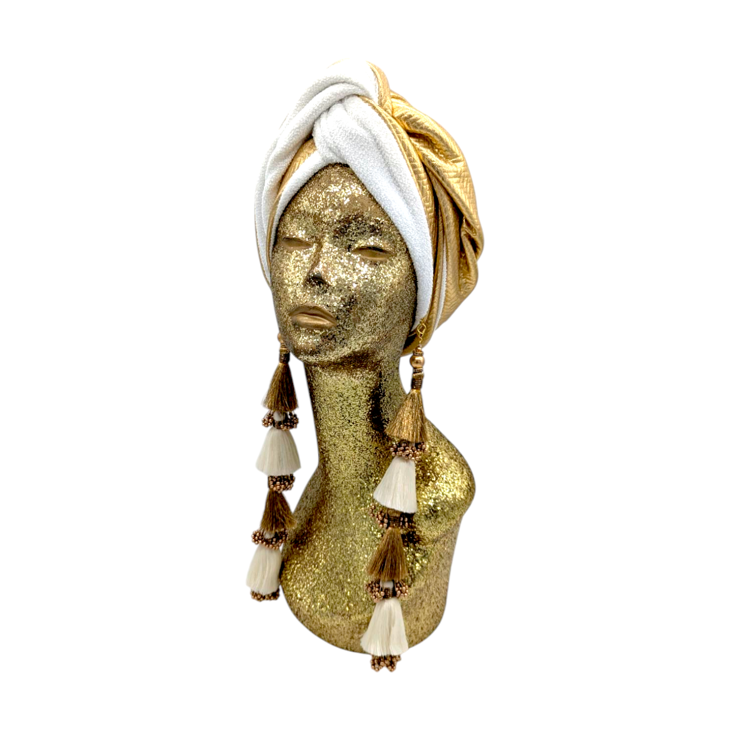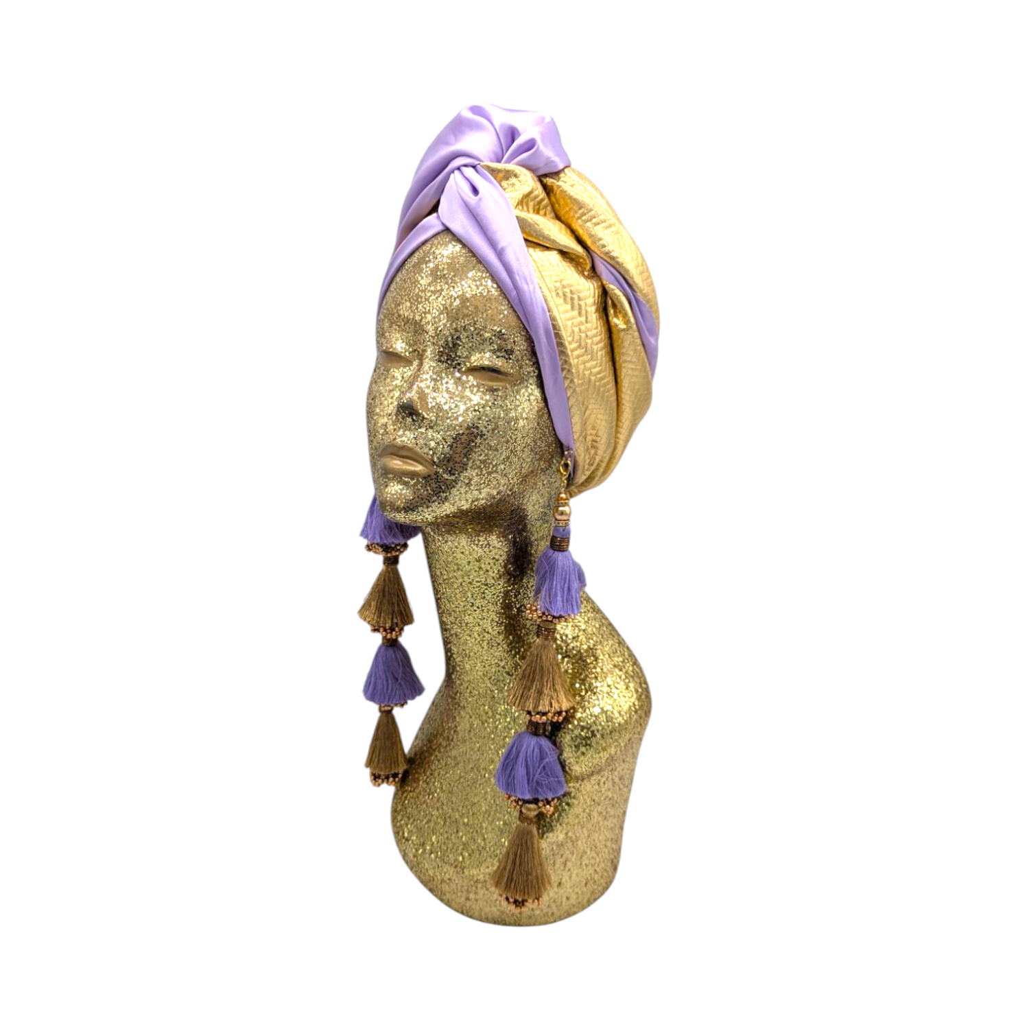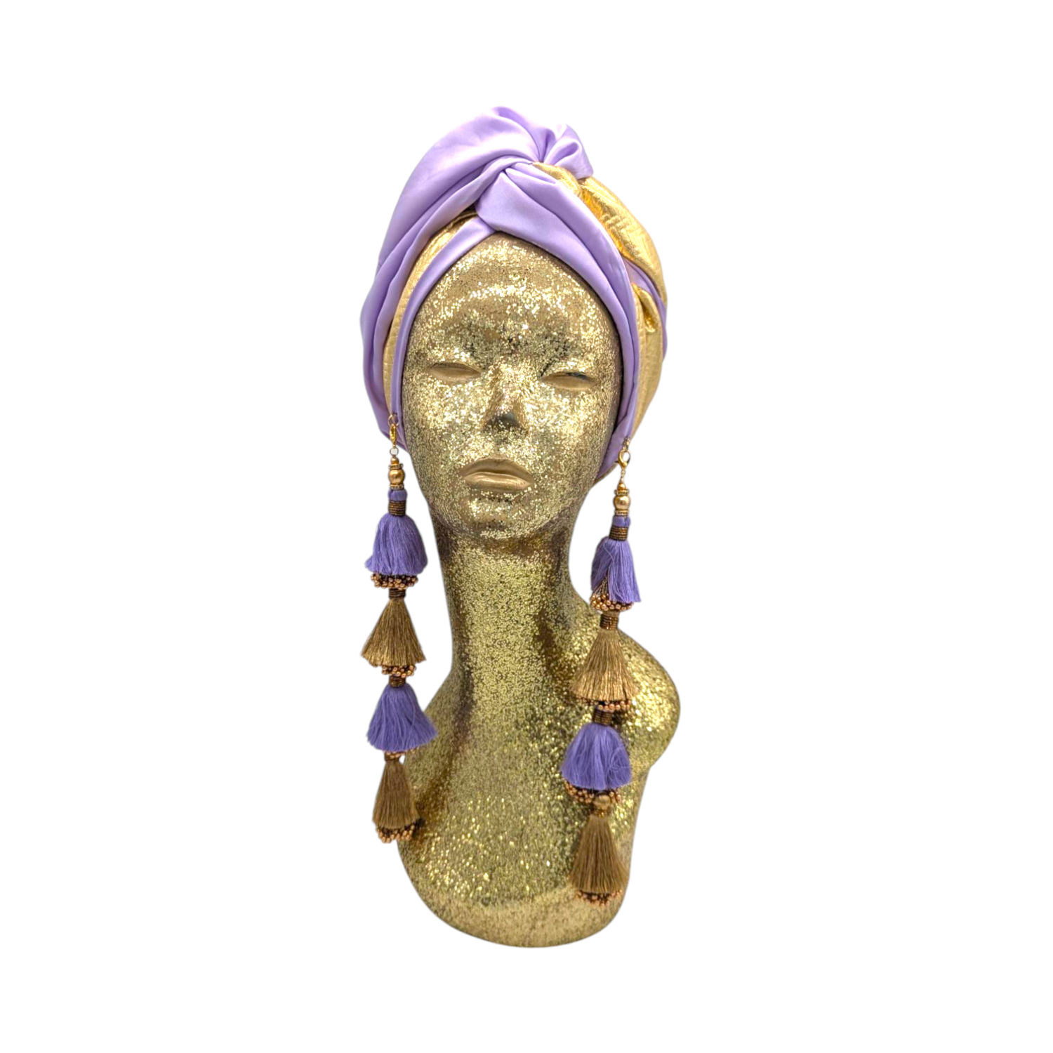 The ultimate in fabulous! This turban offers full coverage and full glam. With a simple twist to get perfect fit. Instant chic in seconds. The earrings are removable. Made with love in Los Angeles. These are direct to consumer products. One size fabulously fits all but please look at our turban tutorials before buying. This style is our best seller as super easy to get perfect fit.