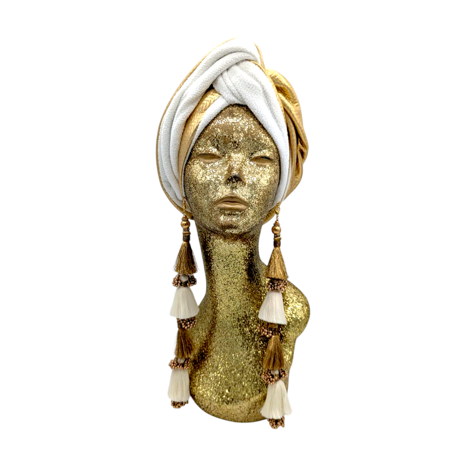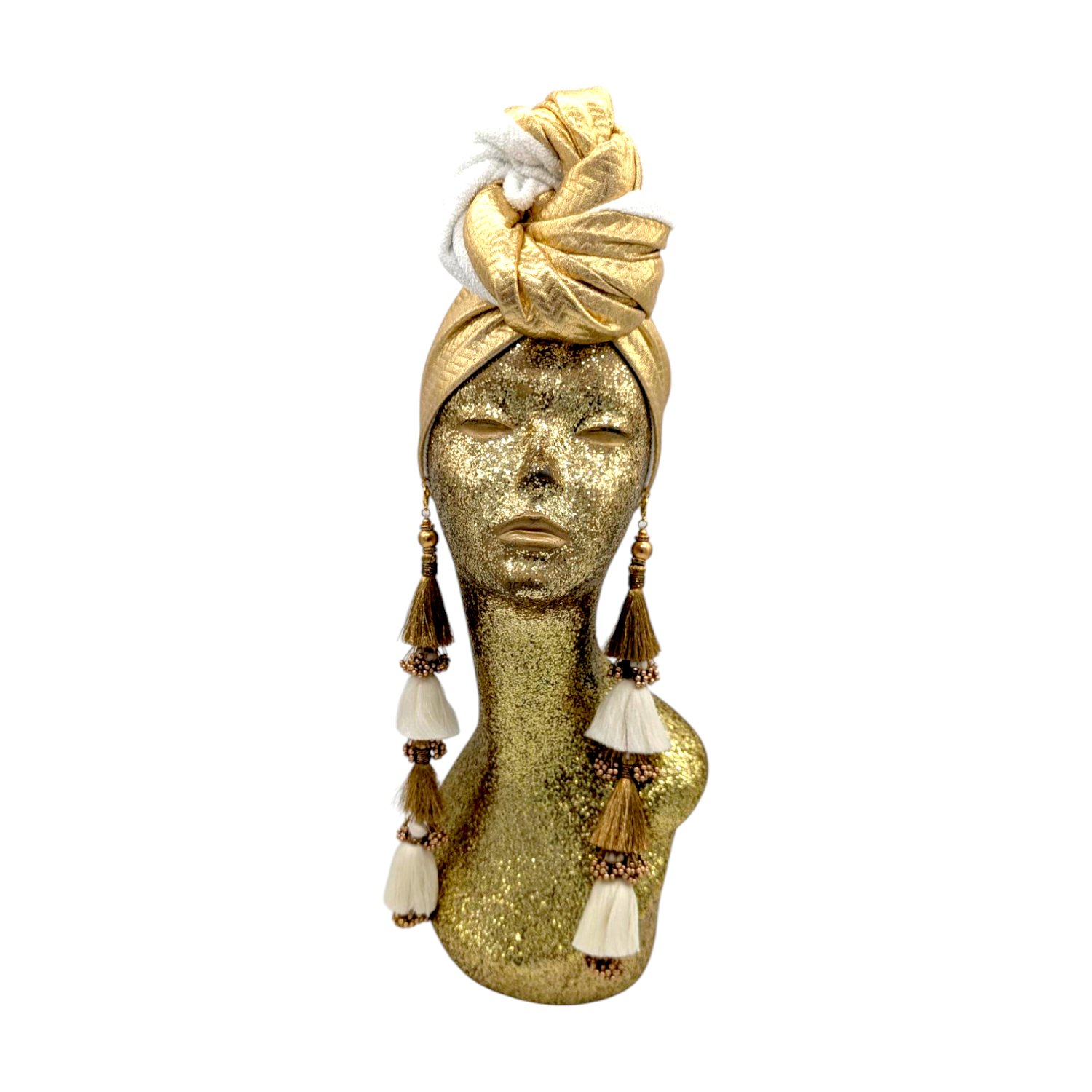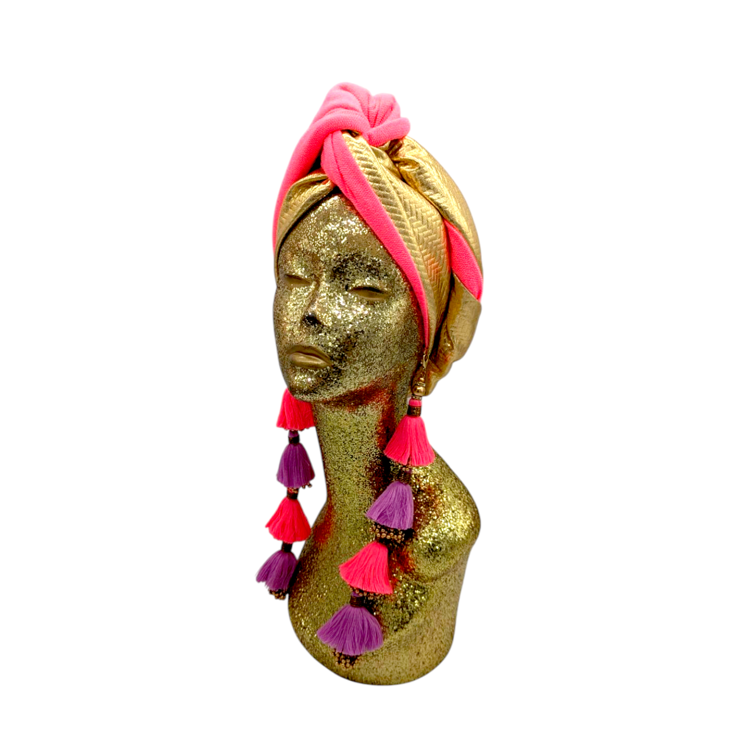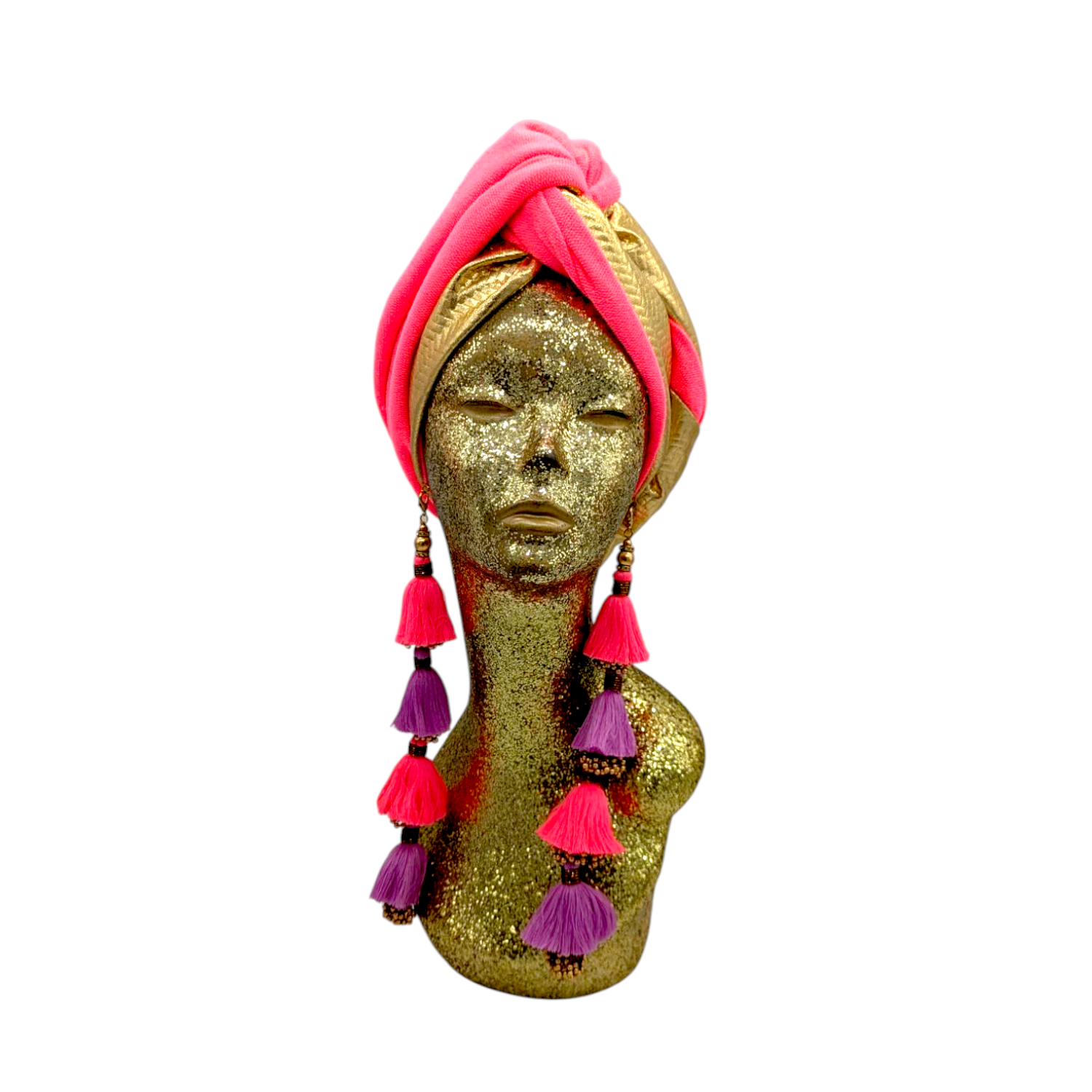 The ultimate in fabulous! This turban offers full coverage and full glam. With a simple twist to get perfect fit. Instant chic in seconds. The earrings are removable. Made with love in Los Angeles. These are direct to consumer products. One size fabulously fits all but please look at our turban tutorials before buying. This style is our best seller as super easy to get perfect fit.