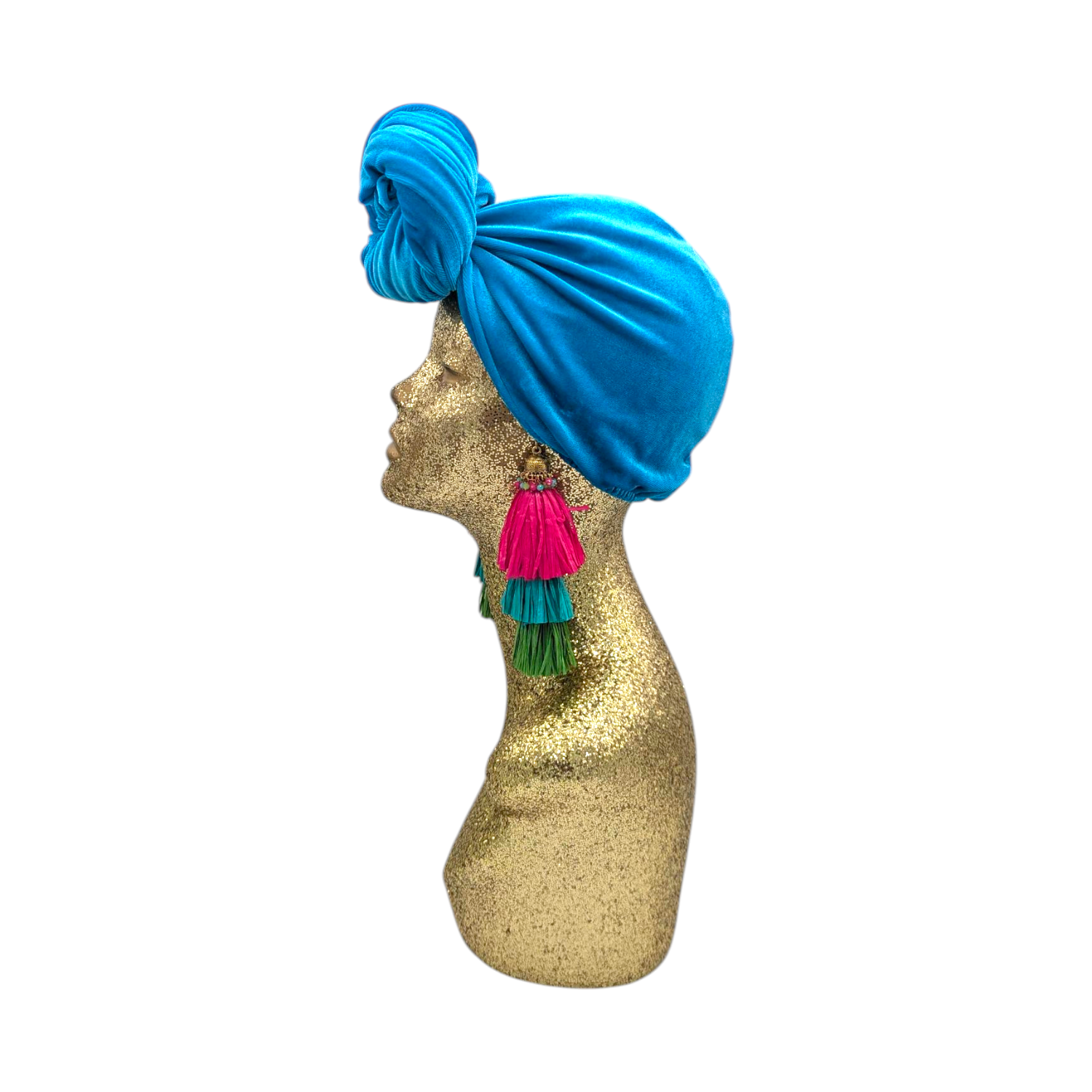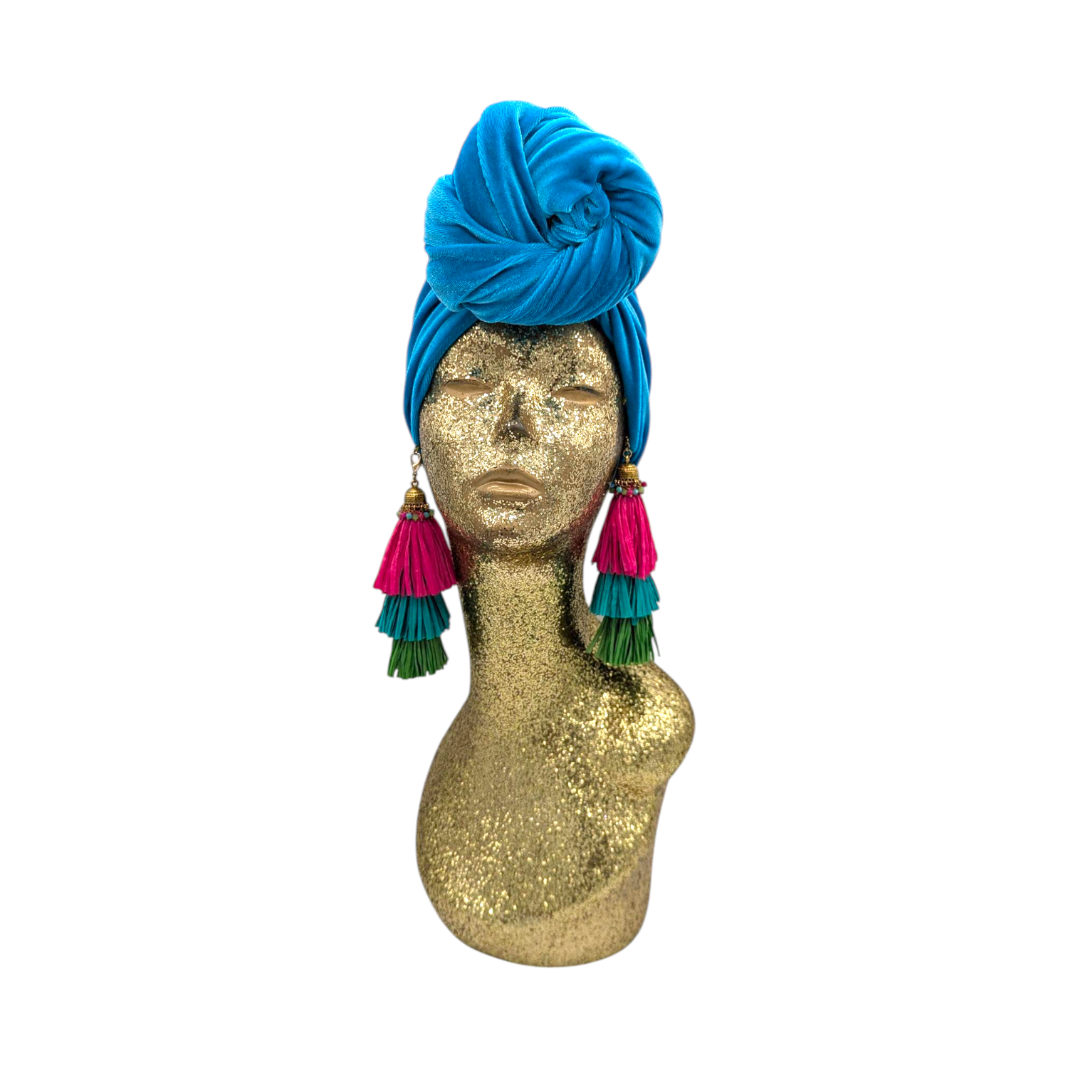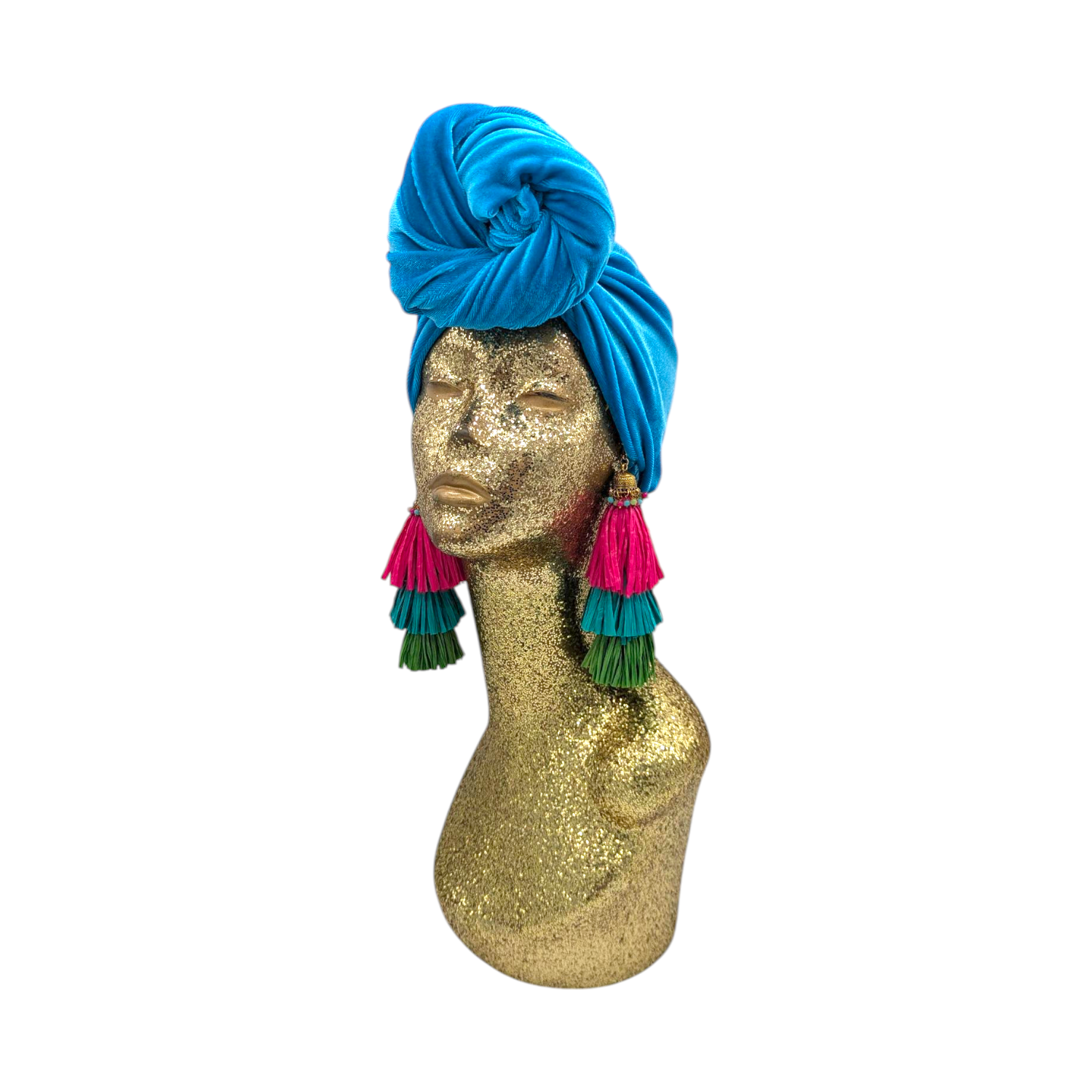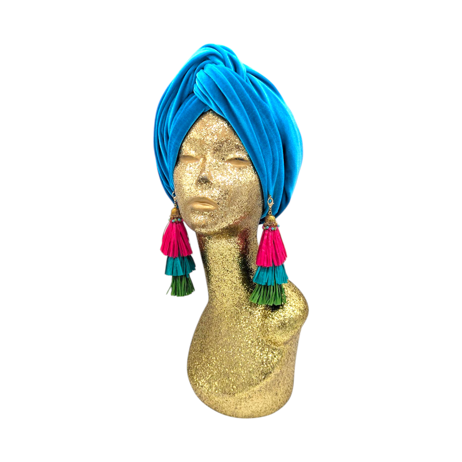 All our tassels are made by female owned company working with artisans in India . The turban is made of soft velour.