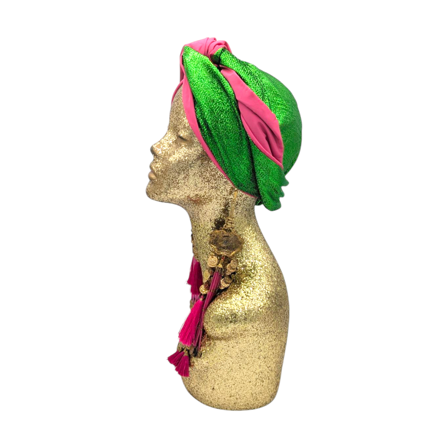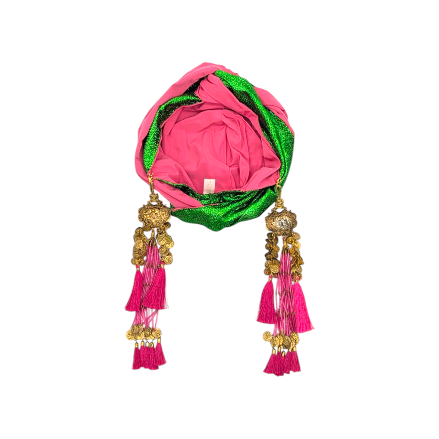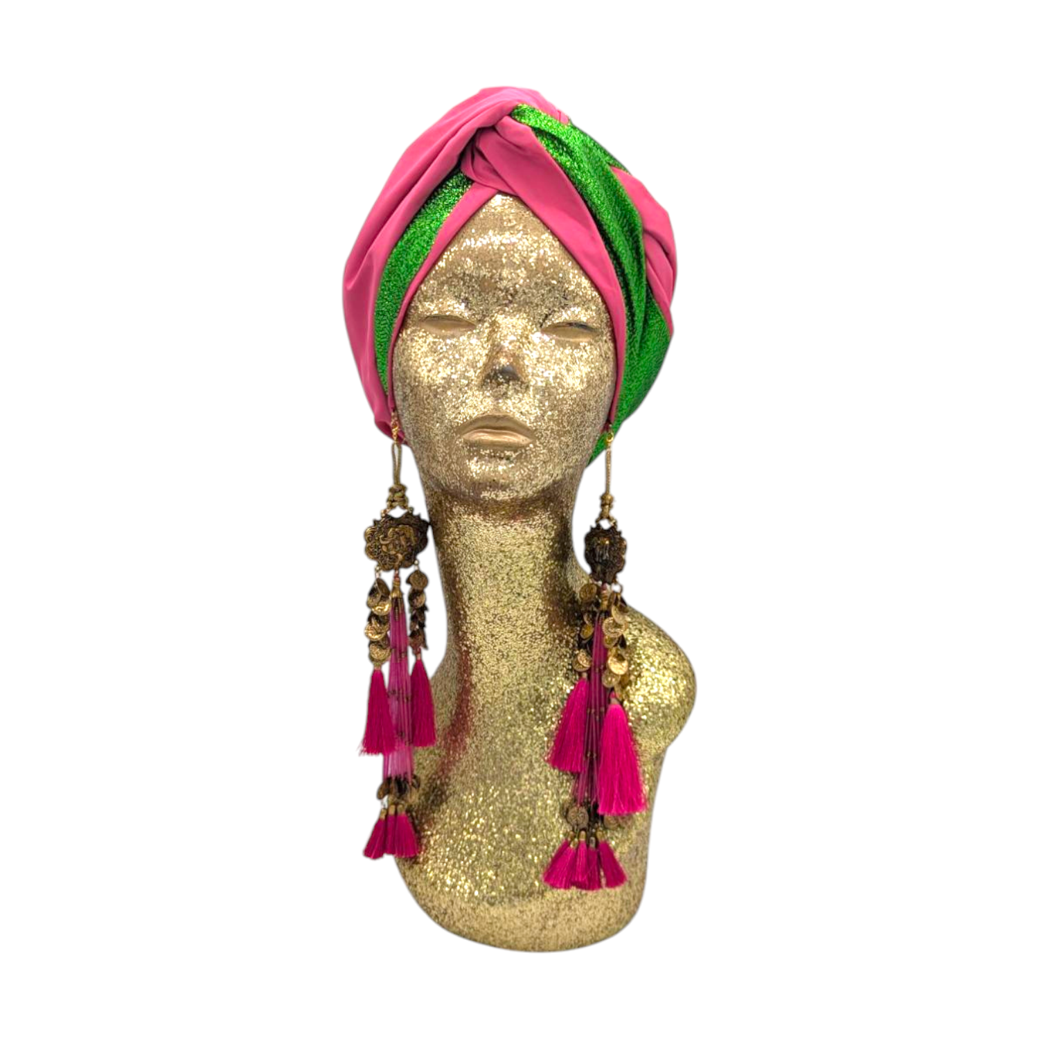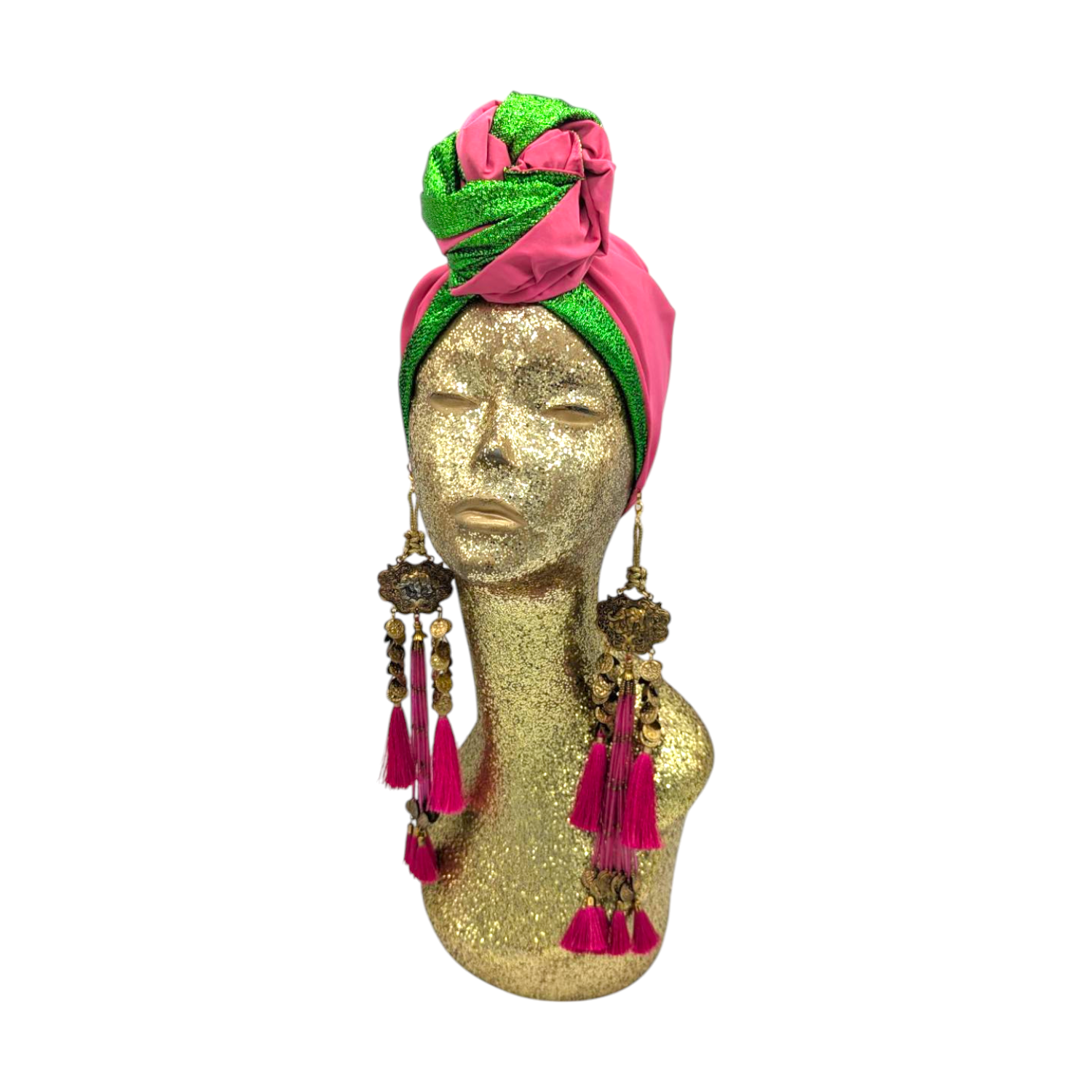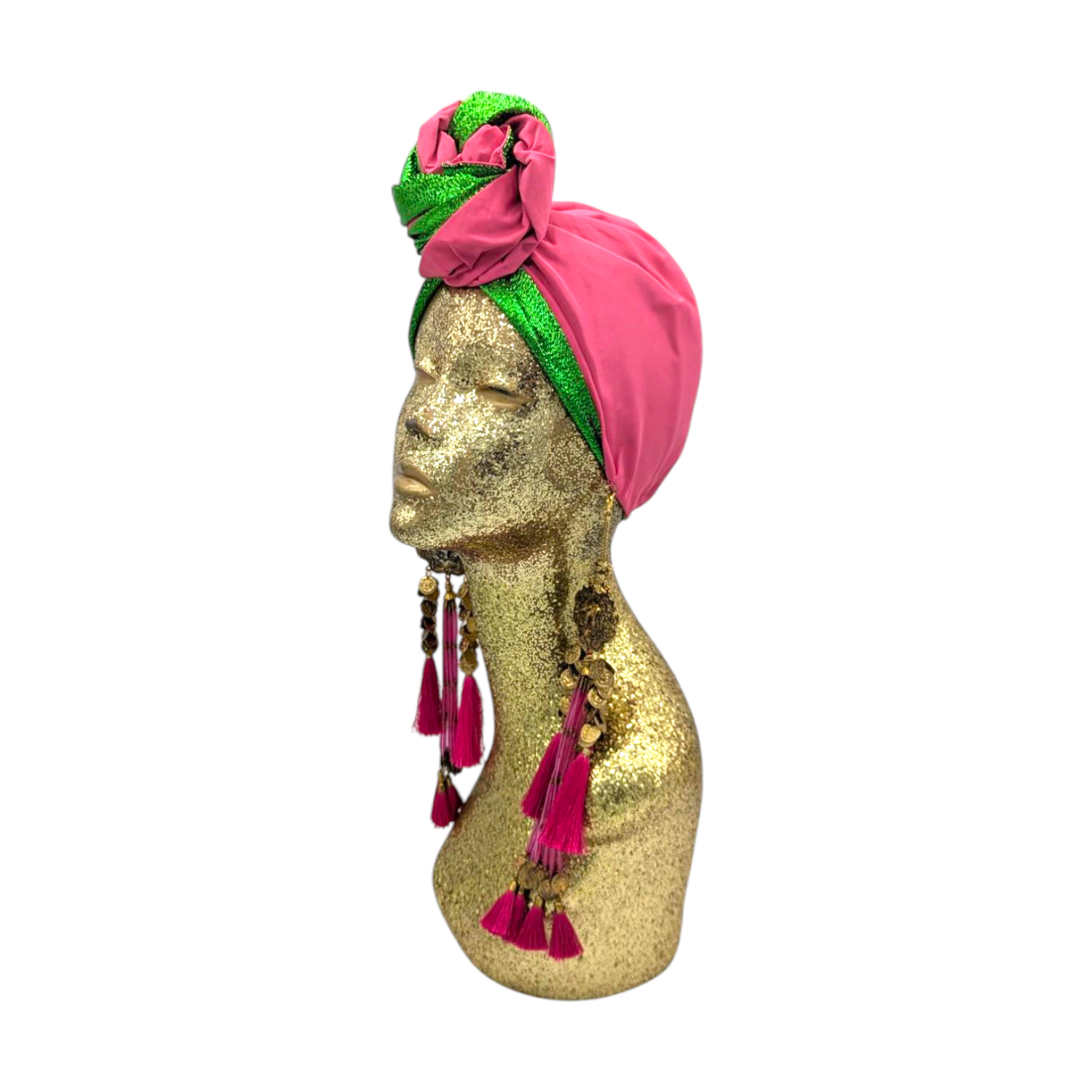 The icing on the cake with this glam reversible turban. wear it full gold glitz or with the soft velour. The tassels are removable and can be worn with our other tassel styles. The tassels are made by artisans in India and turbans with love in Los Angeles.