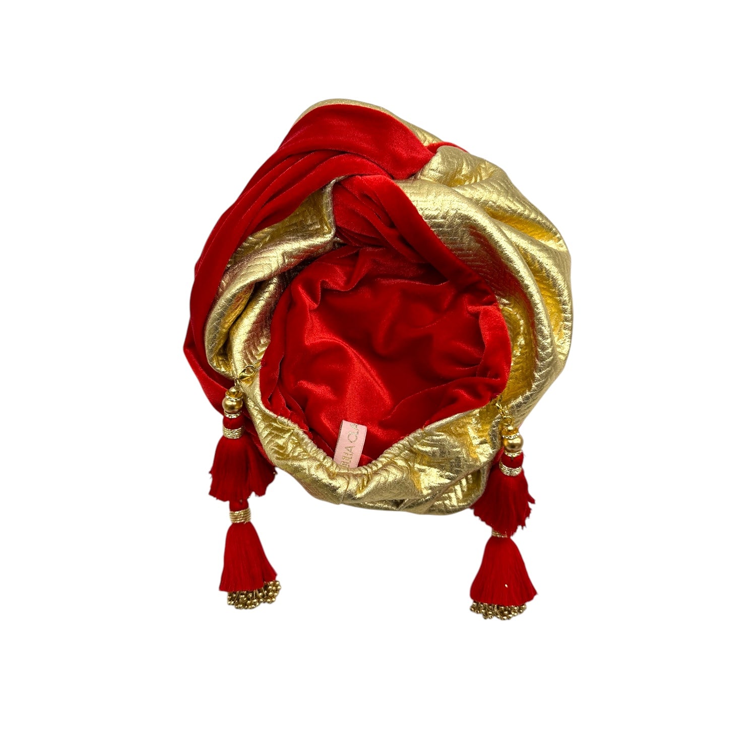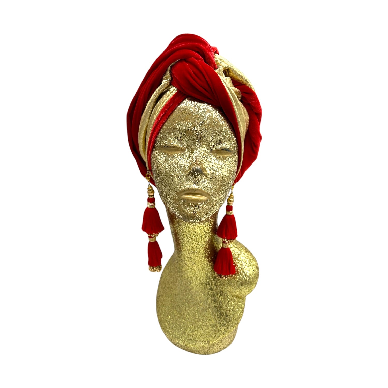 The Gloria Ruby Jumpsuit is just HOT! I matched this outfit with the Zia Golden Copper Dorado Turban and golden tassels and gold jewellery. I felt like a movie star, which I think we all feel like when wearing a JC design.